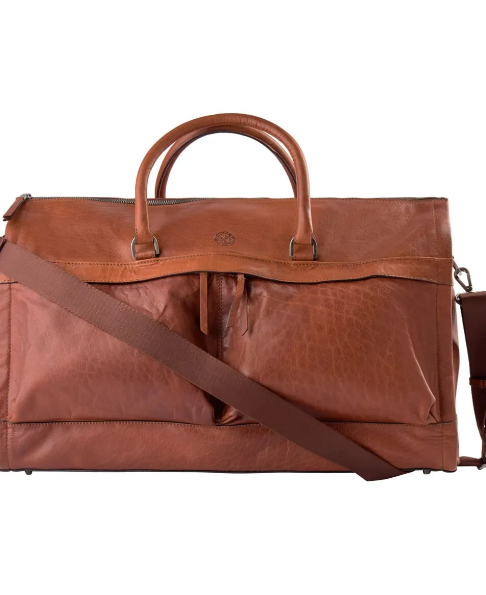 Weekendtaske model ORLANDO fra Saddler. Denne smarte taske har indbygget dragtpose til jakkesæt eller lignende og rum til sko. Perfekt til den travle forretningsmand. Udvendigt er der to rum med lynlåslukning. Justerbar og aftagelig skulderrem i textil med detaljer i læder. Bæredygtigt produceret. Storlek: W55, H34, D27 cm. Materiale: Højkvalitets bøffellæder.
