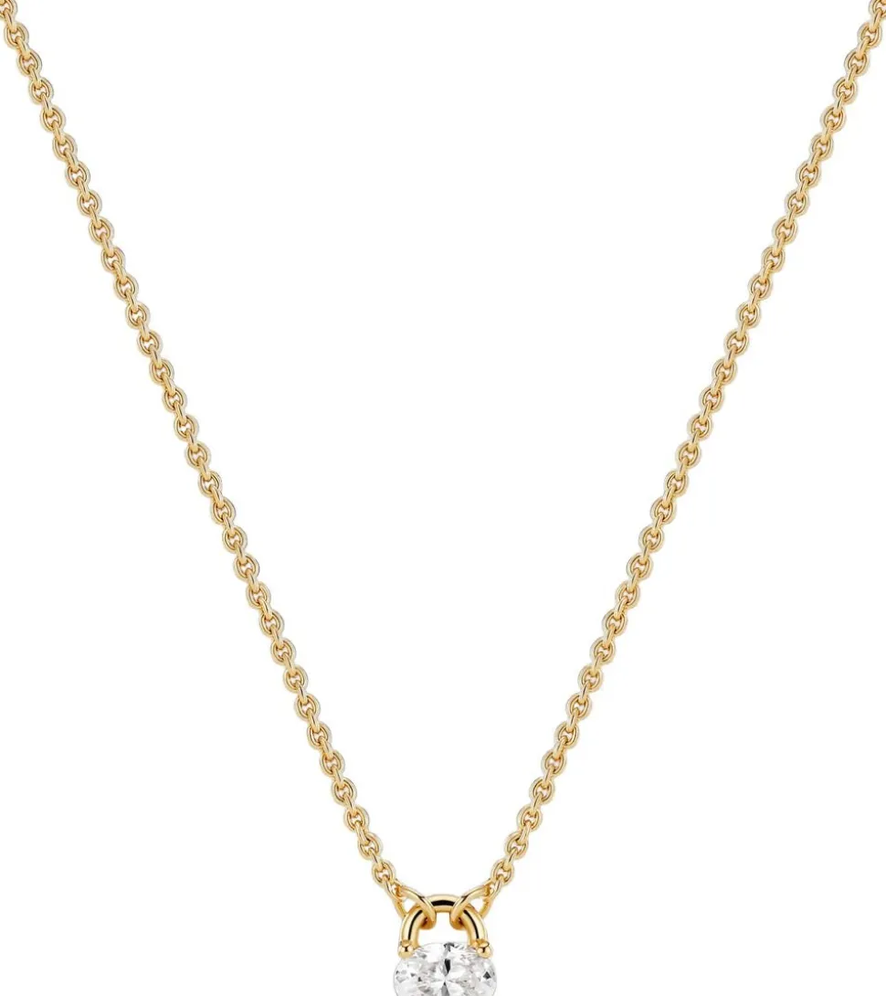 Halskæde lavet af 18 karat forgyldt 925 Sterling Sølv, en poleret overflade og håndsat med facetterede hvide zirkoner.