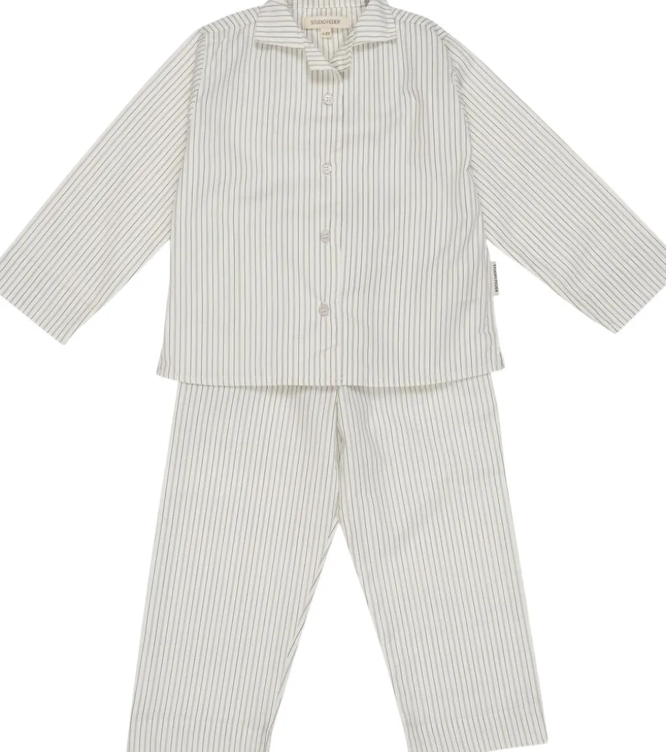 GOTS certificeret pyjamas til børn i pre-washed økologisk bomuldspercale. Vasken giver et fint, underspillet udtryk og gør den utrolig blød. Pyjamassen er syet med franske, indvendige sømme, som giver et stirent udseende og bedre holdbarhed. GOTS (Global Organic Textile Standard) sikre en kontrol af indholdsstoffer fra produktion og høst af råvarer, gennem forarbejdning til færdigt produkt, og giver en garanti for en miljømæssigt og socialt ansvarlig produktion til den endelige forbruger. GOTS (Certified by Control Union CU1013691)