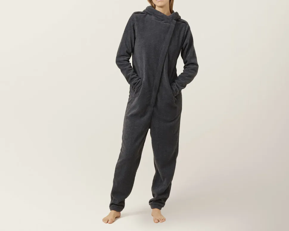 Moderne, lun og blød heldragt til hyggelige stunder og kolde dage. KARMAMEJU heldragten til voksne er en blød, hyggelig og varmende forkælelse til din krop. Moderne og feminint design med diagonal lynlåslukning og fine detaljer, gør den nærmest uundværlig og cool. Brug den på alle tider af døgnet, og året. Nem at hoppe i på vej til sport, yoga, bageren, svømning, hundeluftning, eller når du har brug for at være fri for tøj men stadig vil holde varmen. Lækker stor hætte og dybe lommer. Størrelses guide: