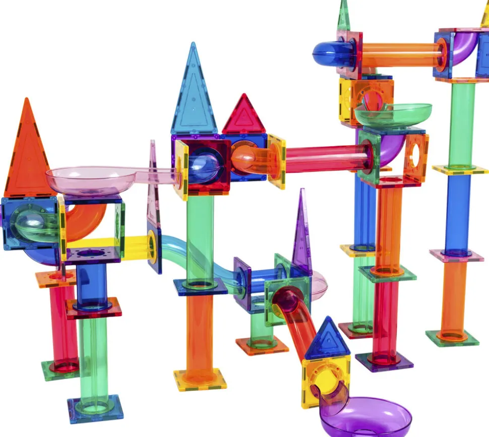 02743 dination, motorisk træning og udvikling af barnets hjerne Udstyret med 10 forskellige geometriske former, herunder søjler, skråninger, rutsjebaner, tragte, U-sv ing og stål-vægtede kugler, giver det 3-dimensionelle racerbane mulighed for flerlagsdesign, der stimulerer børns fantasi PROBLEM LØSNING – Forbedrer og opmuntr er STEM-læring (Science, Technology, Engineering and Math), som er en nøglefaktor for succes i dagens stadigt skiftende verden Med sammenkoblede 3D-former lærer børn om geometriske figurer, magnetiske principper og polariteter, taloptælling samt arkitektoniske og strukturelle design De magnetiske fliser giver børn muli ghed for at konstruere deres egne designs, hvilket fremmer rumlig bevidsthed og finmotoriske færdigheder – alt imens de leger HOLDBAR, SIKKER og IKKE-GIFTIG: Fr emstillet af BPA-fri, børnesikre o