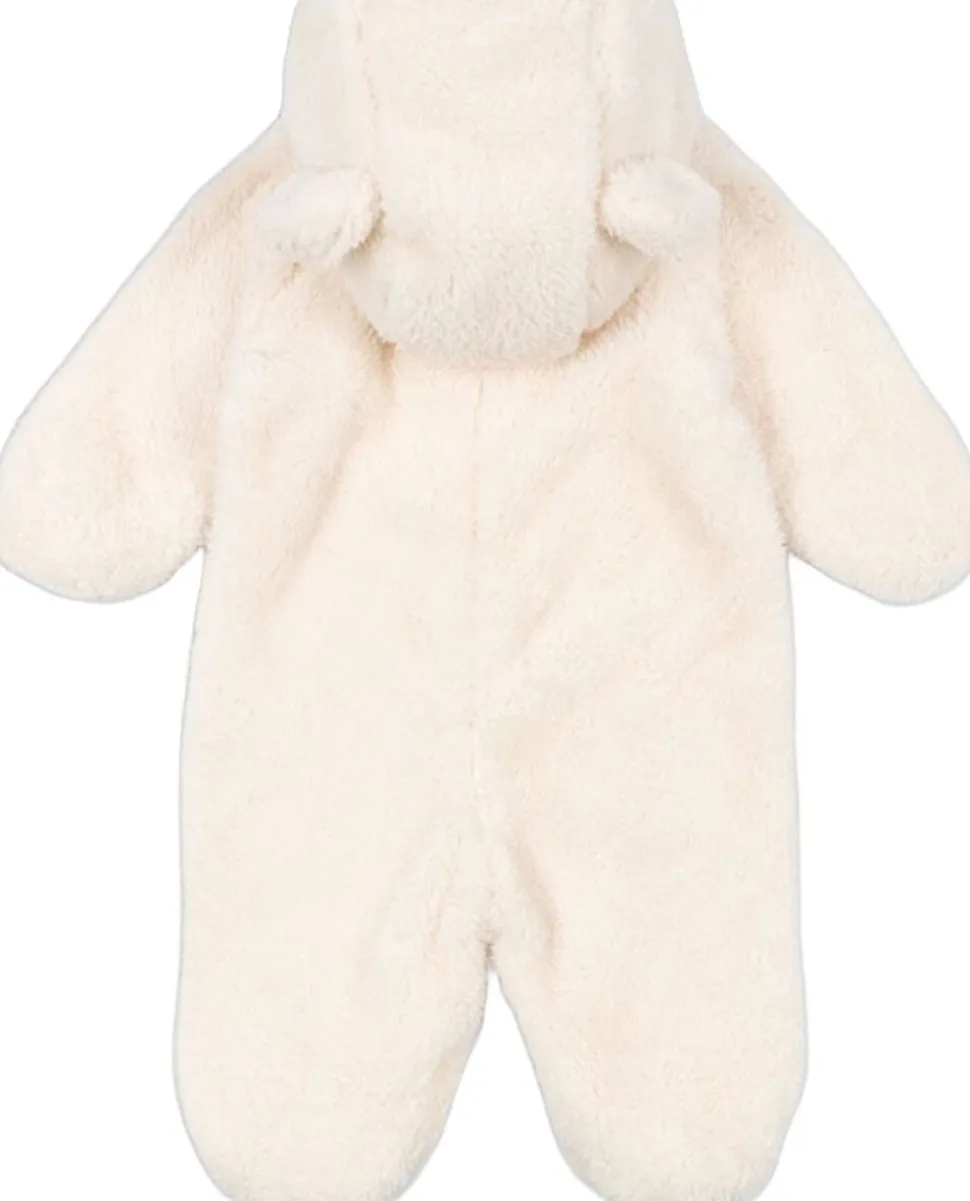 Blød og luftig onesie, der er perfekt til at holde de små varme i lurtiden. Designet med en blød hætte med små bjørneører på toppen, en fuld lynlåslukning foran og en praktisk foldefunktion til hænder og fødder.