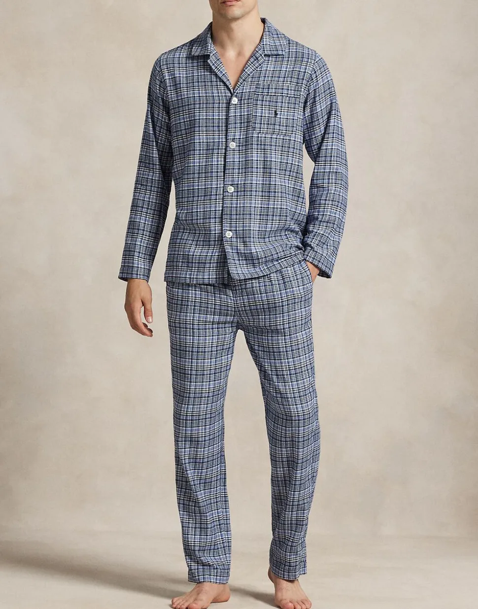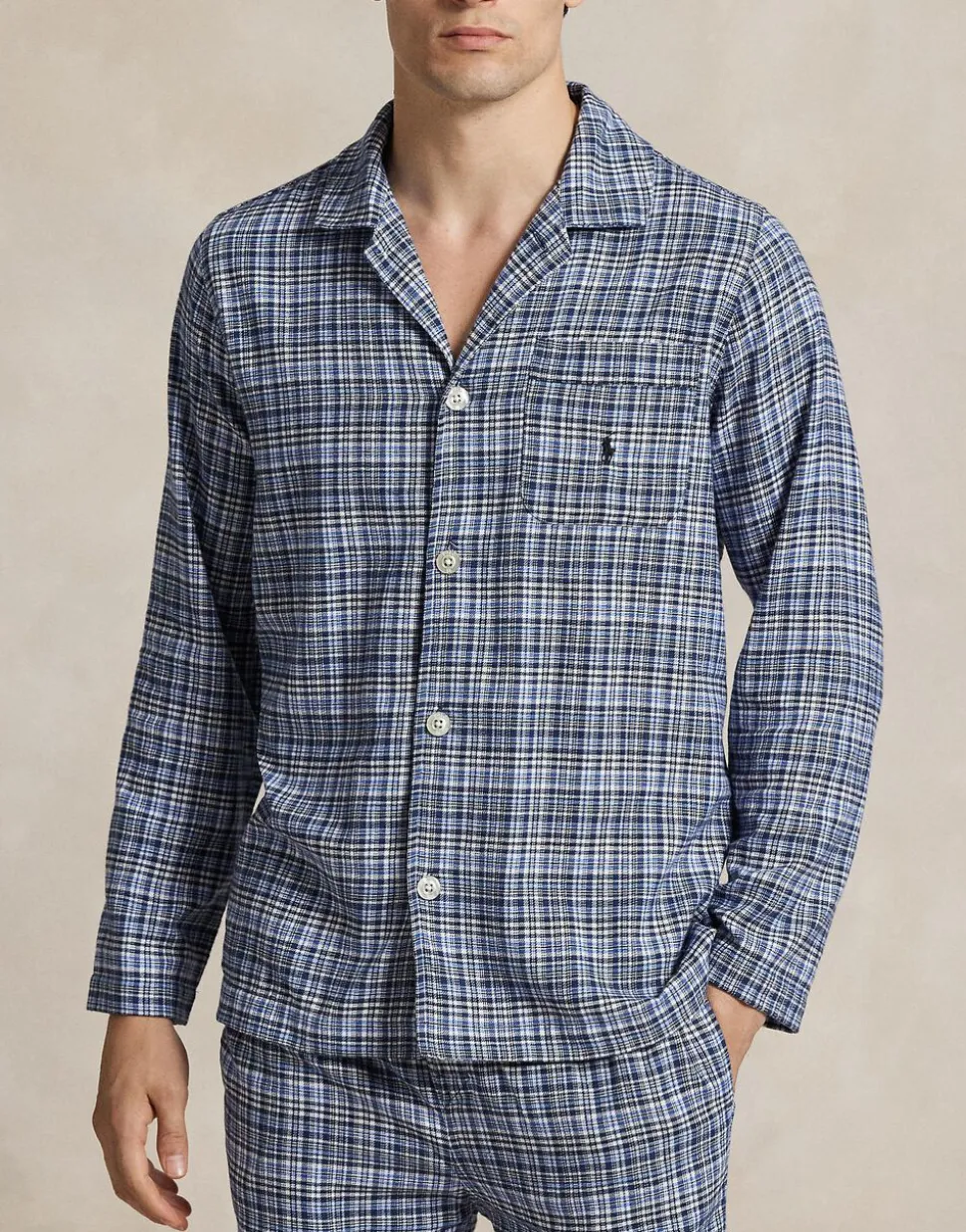 Pyjamassæt fra Polo Ralph Lauren i en blød kvalitet af 100% bomuld. Sættet består af skjorte og pyjamasbukser. Skjorten er enkel i modellen med knaplukning på fronten, krave, lange ærmer samt en dekorativ logodetalje på brystet. Bukserne har en løs pasform med elastik og snøre i taljen. Derudover har sættet et klassisk, ternet mønster. Æske medfølger.