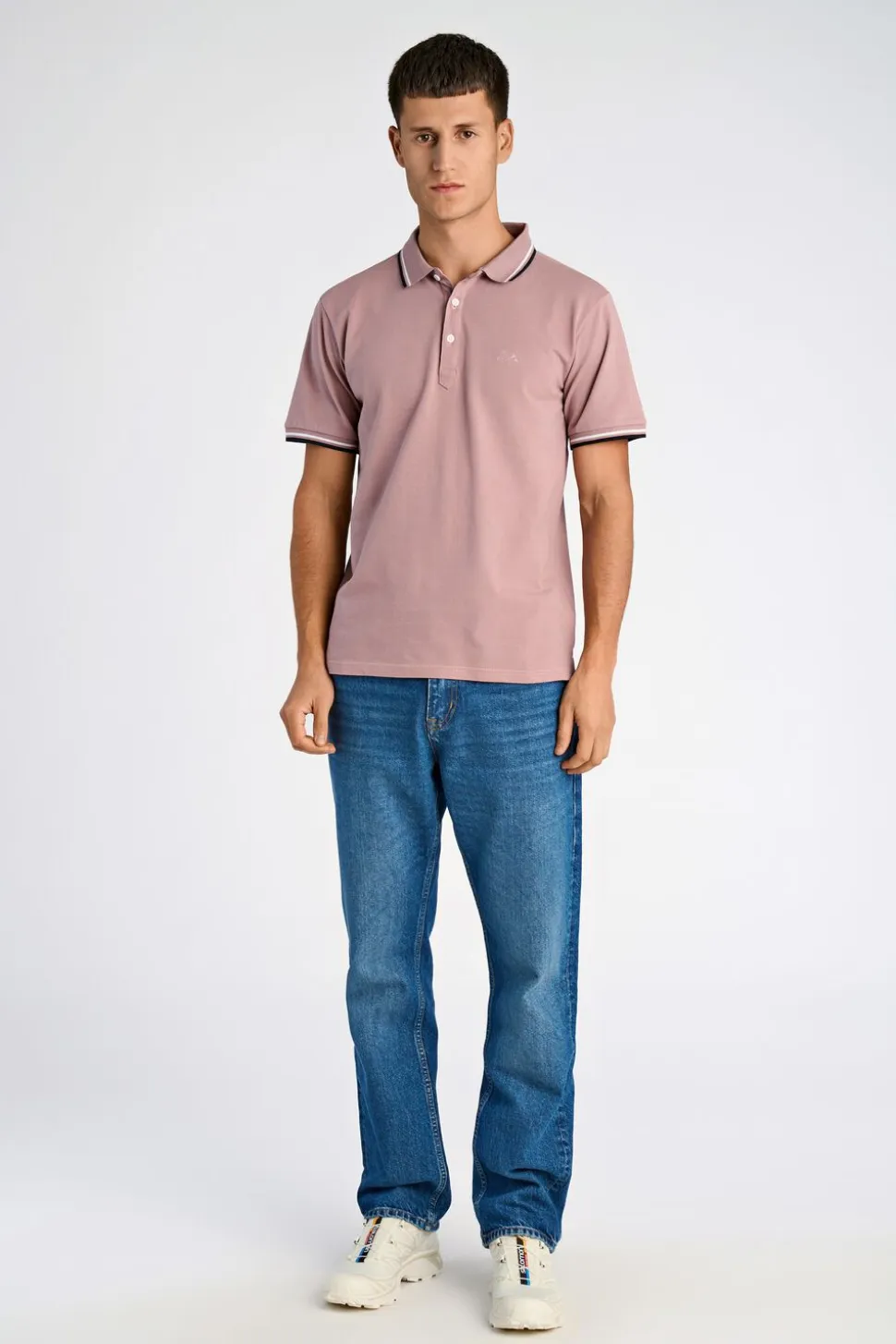 Klassisk polo fra Lindbergh lavet i 100% bomuld. Ensfarvet og med broderet logo på venstre bryst og knappestolpe med tre knapper. Farvedetaljer yderst på ærmene og i kraven.