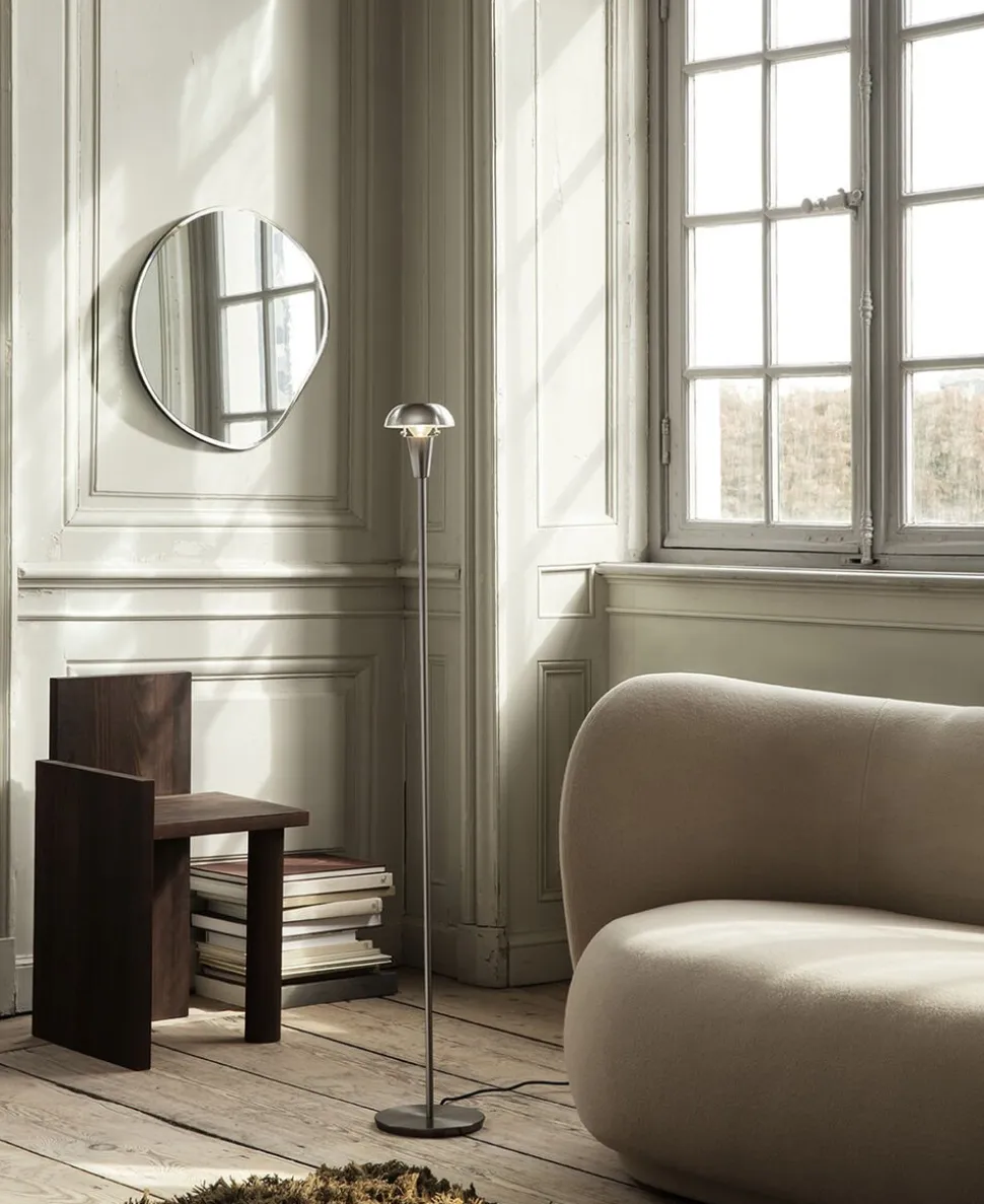 Pond-serien forener form og skønhed ved at bruge organiske former, der bringer åbne og flydende former ind i dit hjem og gør dette funktionelle spejl til et dekorativt vægelement. De buede kanter indrammes af en slank metalramme og kan hænges op på alle mulige måder, så du kan finde den perfekte pasform til dit rum. Bemærk: spejlets metalramme har to svejsemærker på de punkter, hvor metallet er smeltet sammen.