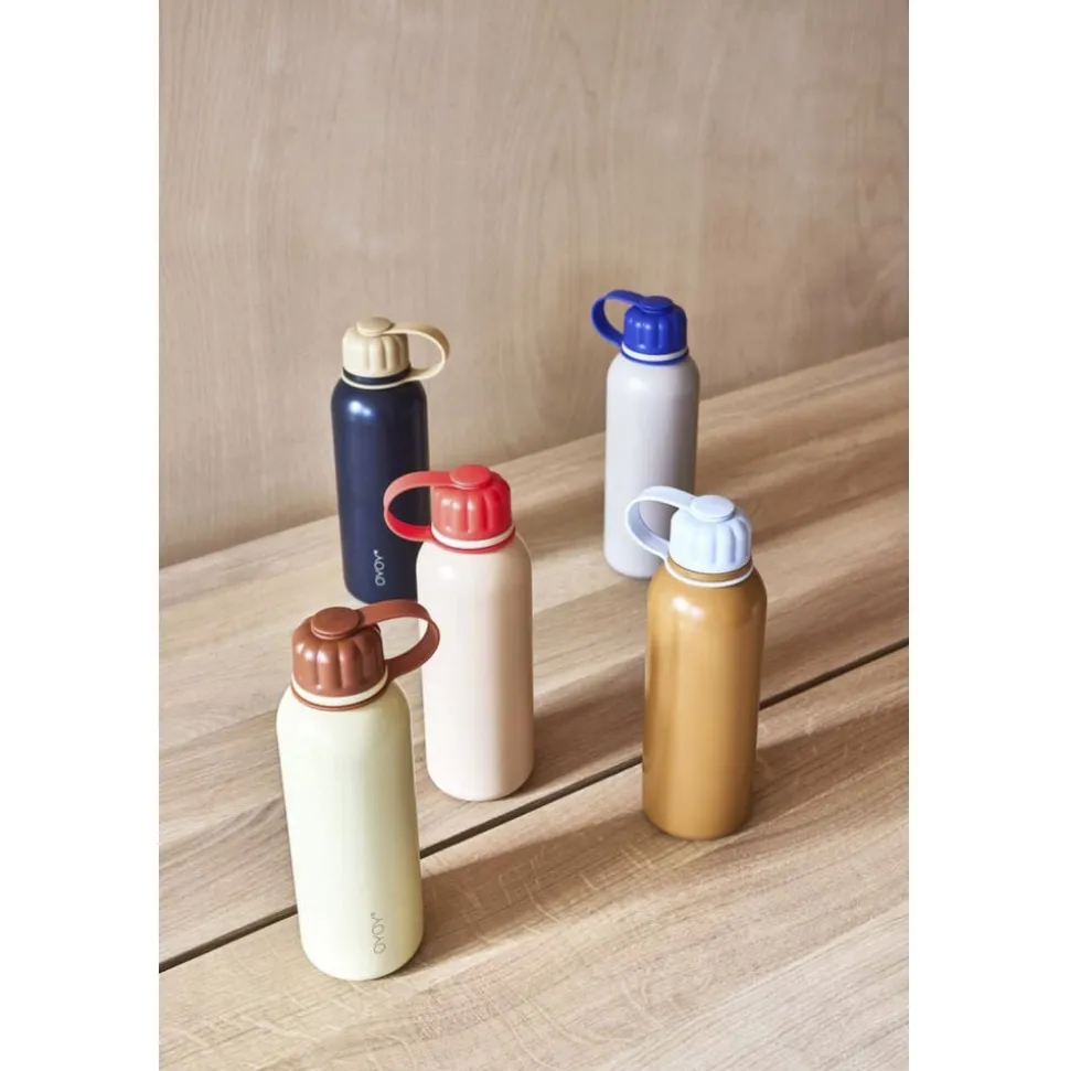 Denne cool vandflaske kan indeholde 520 ml varm eller kold væske. Den kommer med et normalt skruelåg. Pullo vandflaskerne er lavet af rustfrit stål. Den har en termisk funktion og holder væsker varme i op til 6 timer og kolde i op til 12 timer. Låget lukker helt tæt på grund af silikonen i låget, som også er BPS fri. Kun håndvask (tåler ikke opvaskemaskine). Fødevaregodkendt Velegnet til opvaskemaskine og mikrobølgeovn. For mere information om fødevarekontaktmaterialer og overensstemmelseserklæringer, brug venligst dette link- https-//oyoy. presscloud. com/digitalshowroom/#/gallery/Compliance (Du kan søge efter en bestemt vare ved at indtaste varenummeret i søgefeltet øverst til højre)