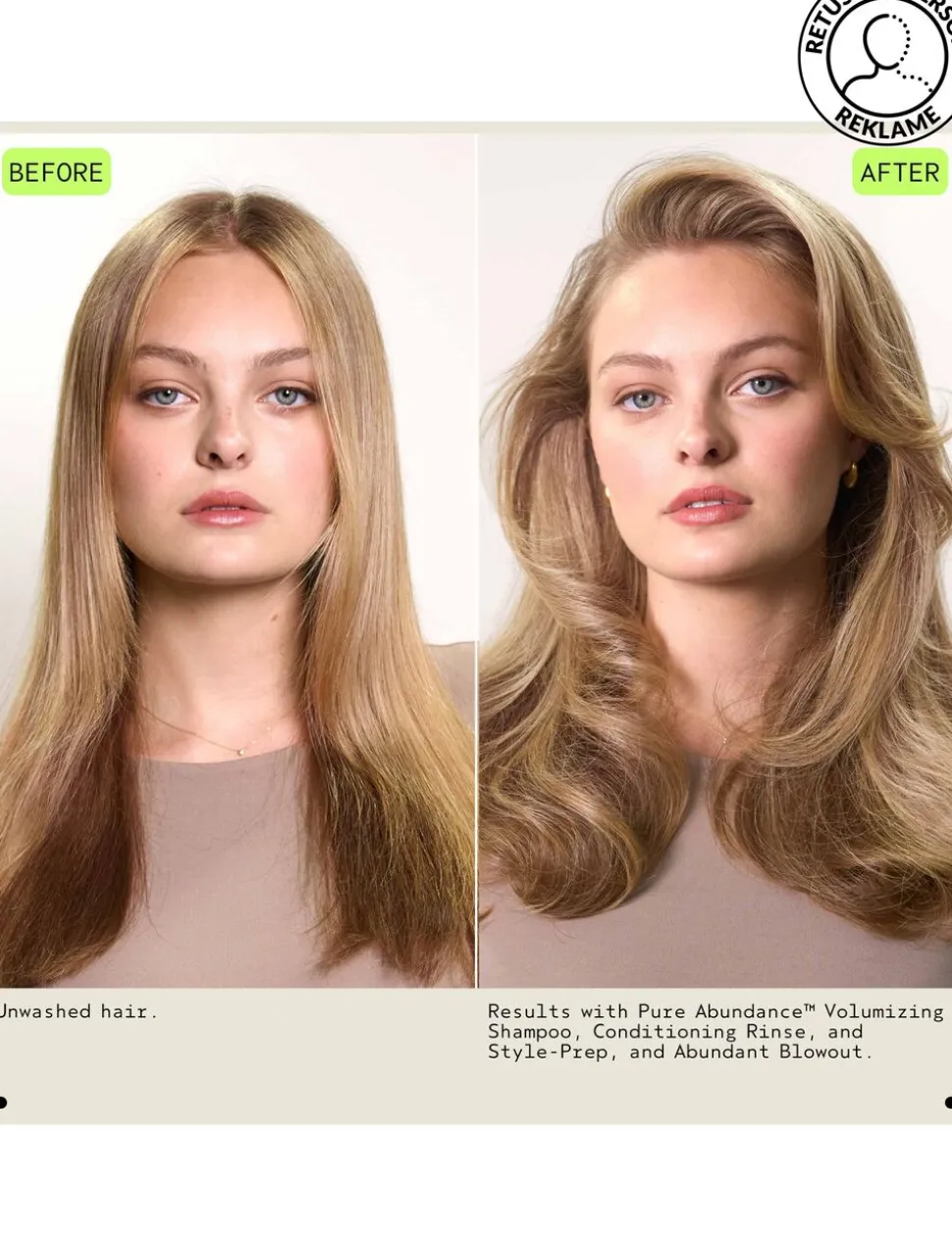 *Ved brug af Pure Abundance™ Volumizing Shampoo and Conditioning Rinse til fint Hår vs. uvasket Hår.