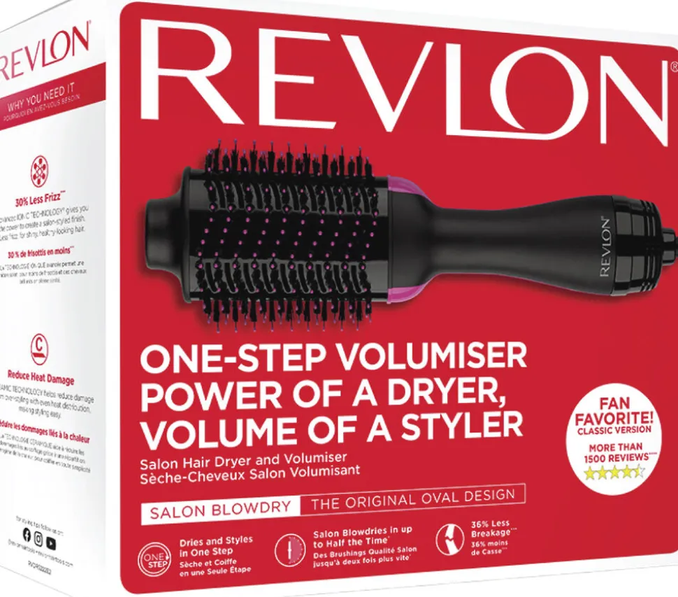 Du sparer derfor masser af tid, når du både tørrer og sætter håret i én og samme handling. Samtidig er denne airstyler fra REVLON testet og afprøvet i egne professionelle frisørsaloner, hvilket er din garanti for et praktisk og holdbart produkt. Den indbyggede ionteknologi kombineret med keramisk belægning plejer dit hår under tørringen og efterlader det smukt, blankt og skinnende.