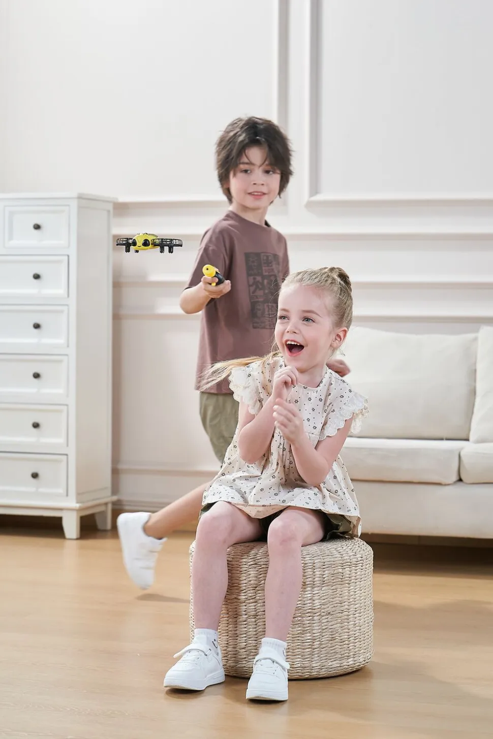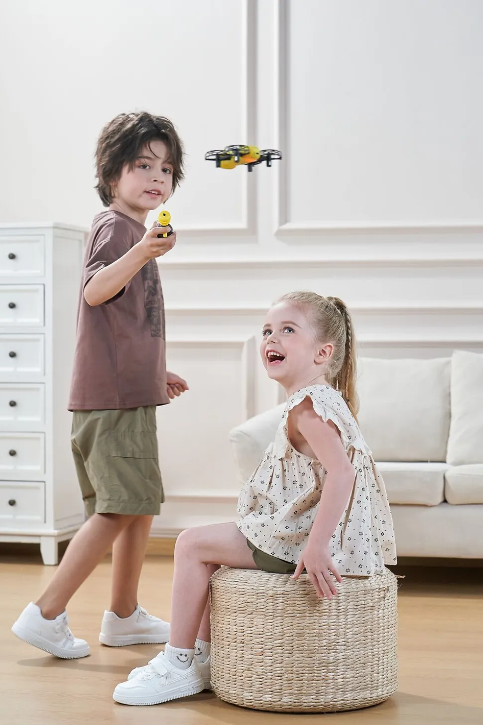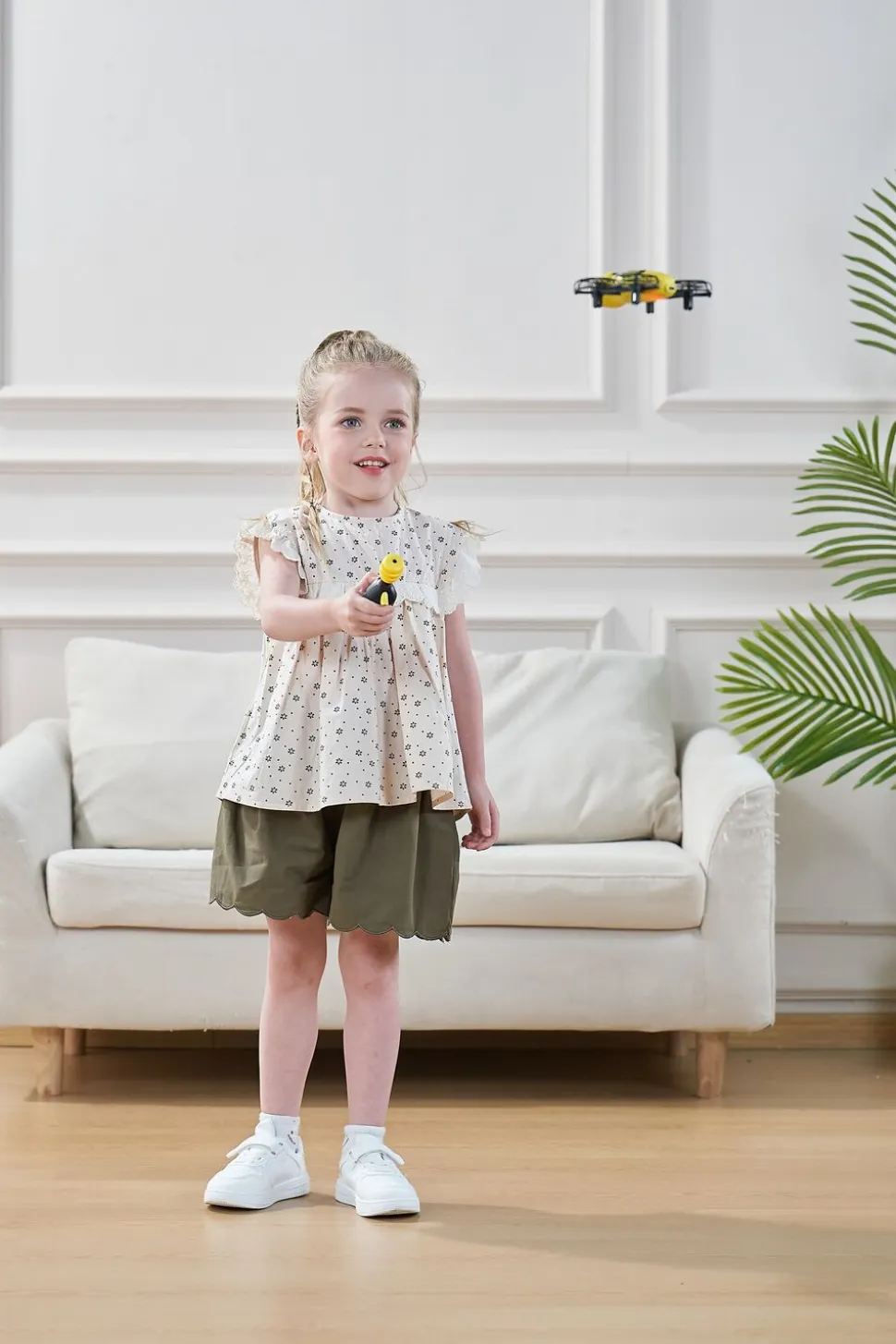 Follow Me Bee fra Syma er det ultimative stykke fjernstyrede flyvelegetøj til førskolebørn og er supernem at betjene Bare tryk på fjernbetjeningen for at starte , og slip for at lande Når bien er i luften, vil den følge dit barn og holde en fast afstand på ca 1 meter Når dit barn trykker på knappen, vil bien trofast føl ge dem og skabe en interaktiv legeoplevelse For ekstra sjov, dobbeltklik på fjernbetjeningsknappen, mens bien flyver, og den vil udføre et spændende flip i luft en Se dit barns fantasi svæve med Follow Me Bee USB-ladekabel medfølger Fra 5 år – størrelse: 11,9 cm L x 11 cm B x 3,96 cm H – frekvens: 2,4GHz – fjernbetjenin g kræver 2 x AAA batterier (ikke inkluderet) – bien bruger Li-Ion batteri 3,7V/500mAh (inkluderet) – ladetid:ca 90 minutter – flyvetid pr opladning: op til 7 mi nutter – rækkevidde: op til 3 meter