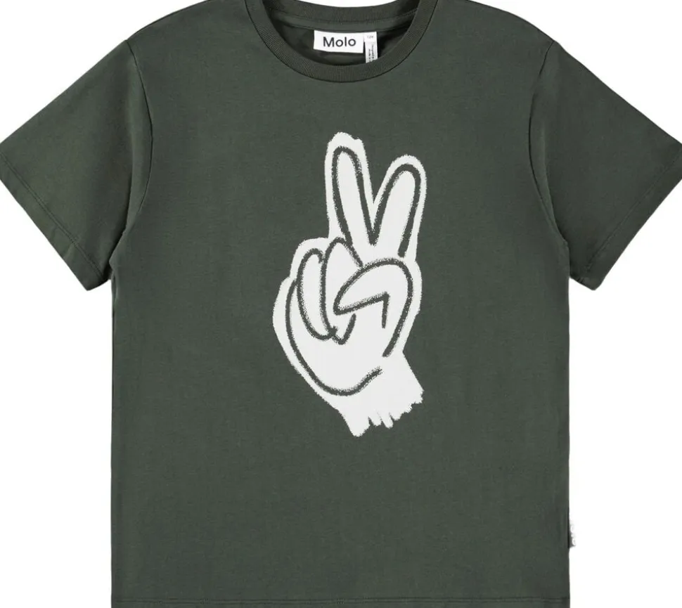 Denne grønne t-shirt fra Molo er lavet af blødt økologisk bomuld med korte ærmer og ribkant i halsen. T-shirten har en løs pasform.