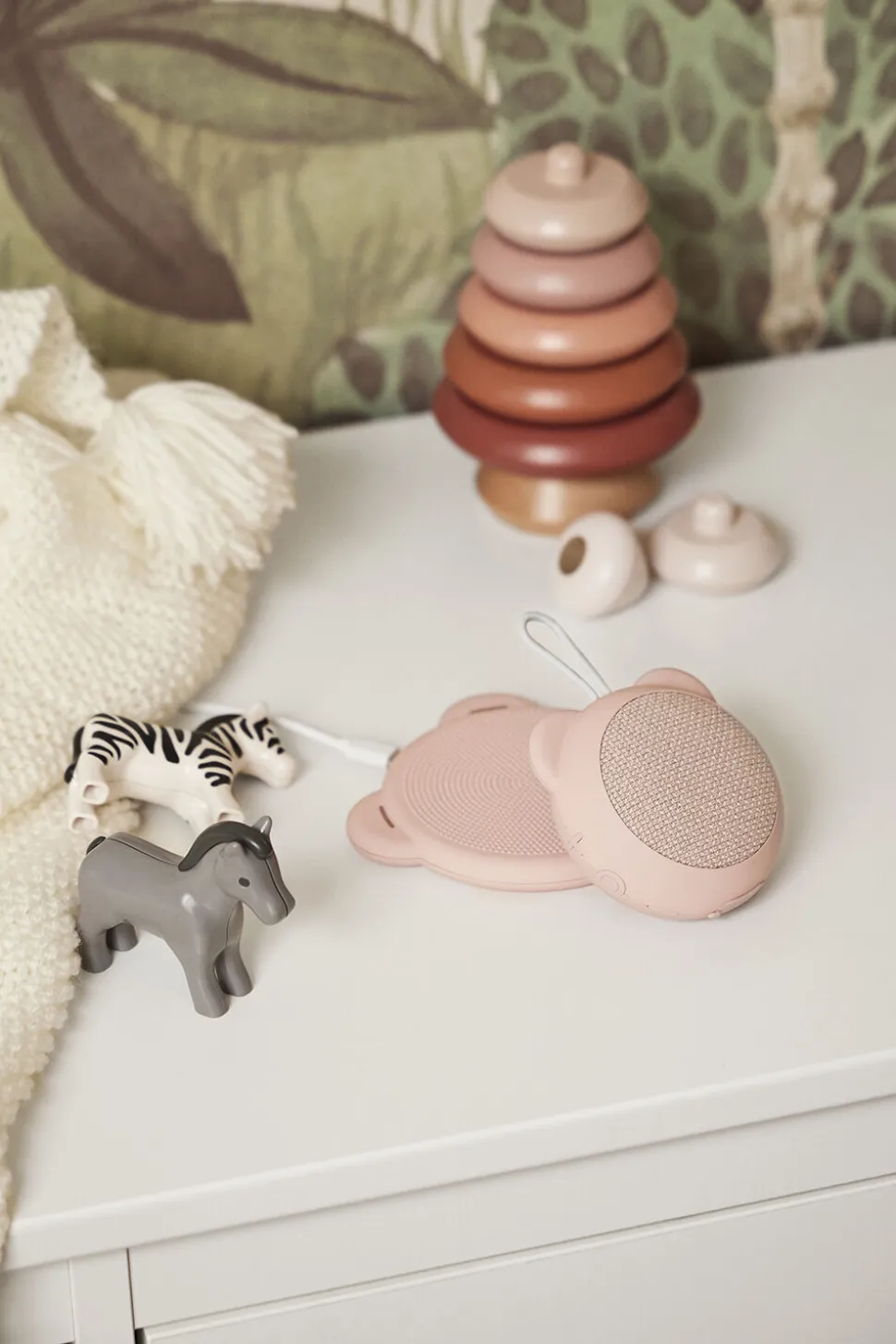 Roar er en bedårende Bluetooth højttaler, der har form som en bjørn. Selvom den ikke brøler med stor kraft, leverer den en harmonisk og velafbalanceret lyd. Denne højttaler er lavet af 100% genanvendt plast, ligesom alle vores designs, og den har desuden en top lavet af 98% genanvendt polyester. Uanset om du vælger at hænge den op på et børneværelse eller tage den med på udendørs eventyr, er Roar designet til at passe ubesværet ind i din livsstil. Med bekvemmeligheden ved Qi-opladning kan du trådløst oplade Roar ved hjælp af vores udvalg af Qi-trådløse opladere. Overvej at kombinere den med vores Paddy oplader, en anden sød ledsager, for at skabe en dejlig duo, der supplerer hinanden perfekt.