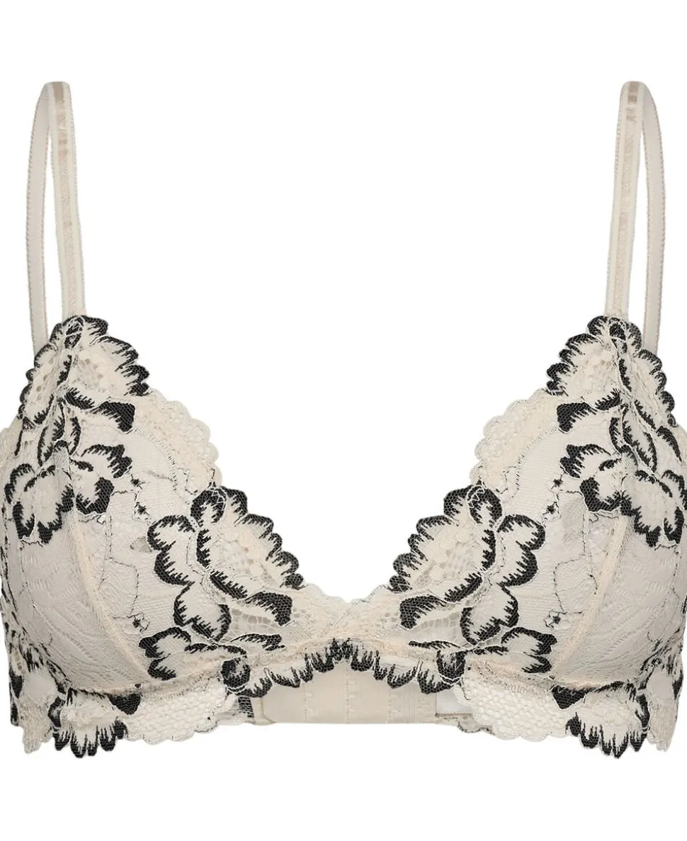 BH fra Magasin du Nord Collection i en smuk blondekvalitet. BH’en er enkel i modellen med trekantede skåle, smalle, justerbare skulderstropper, hægtelukning på ryggen samt en smal elastikkant under skålene. En skøn BH i den lækreste kvalitet. Se også de andre fine styles i Ruby-serien.