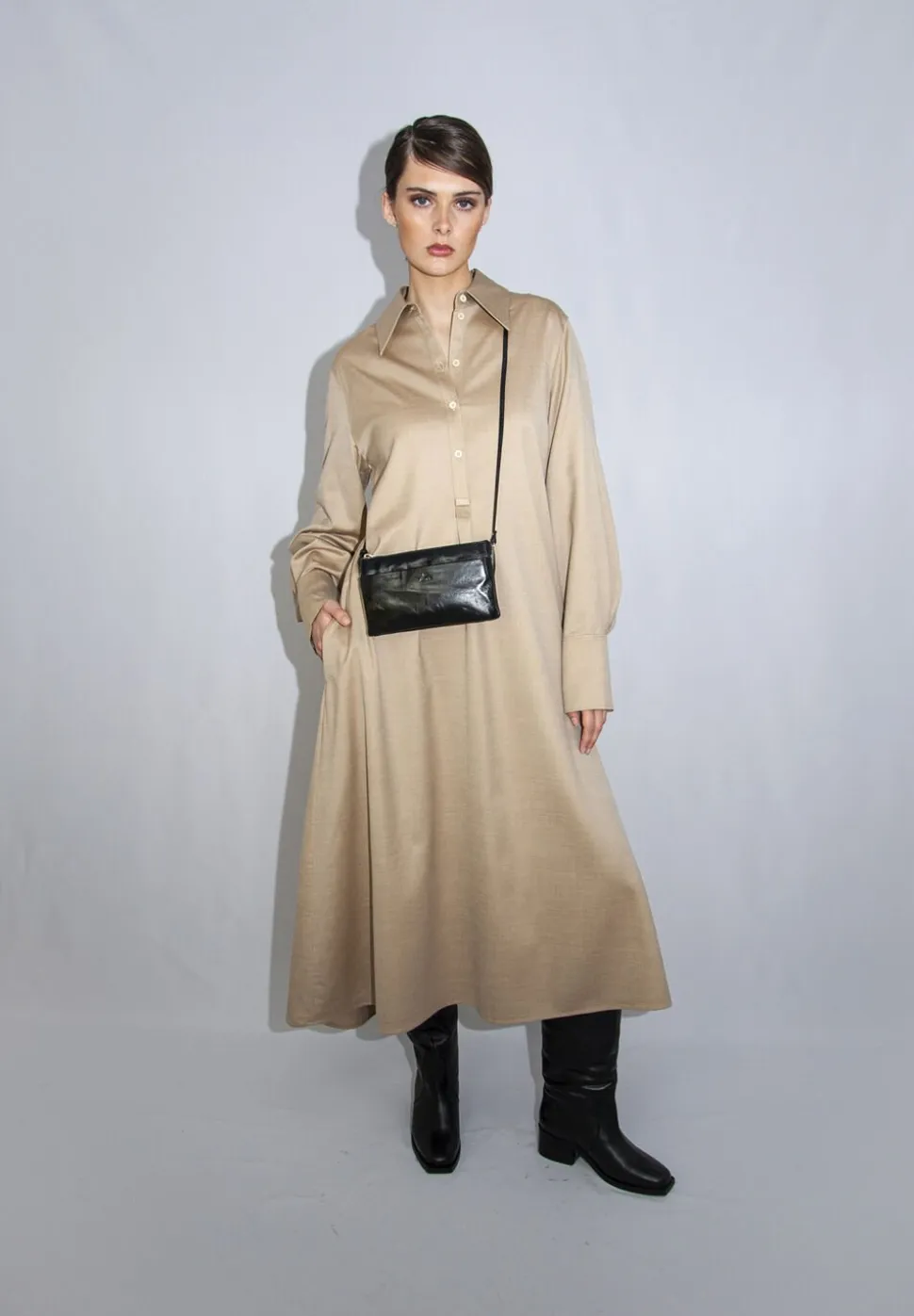 Adax kombi clutch i Salerno kalveskind. Clutchen har flere gode rum og plads til mange kort. Fantastisk rummelig model. Den er opdelt i midten af et rum der lukke med lynlås – kan evt. bruges til mønterne. Clutchen lukkes med en lynlås. Den aftagelige håndledsrem kan evt. bruges til nøgler.Vi anbefaler at Cormorano skindet plejes med Adax læder balsam. 20x12x3 cm