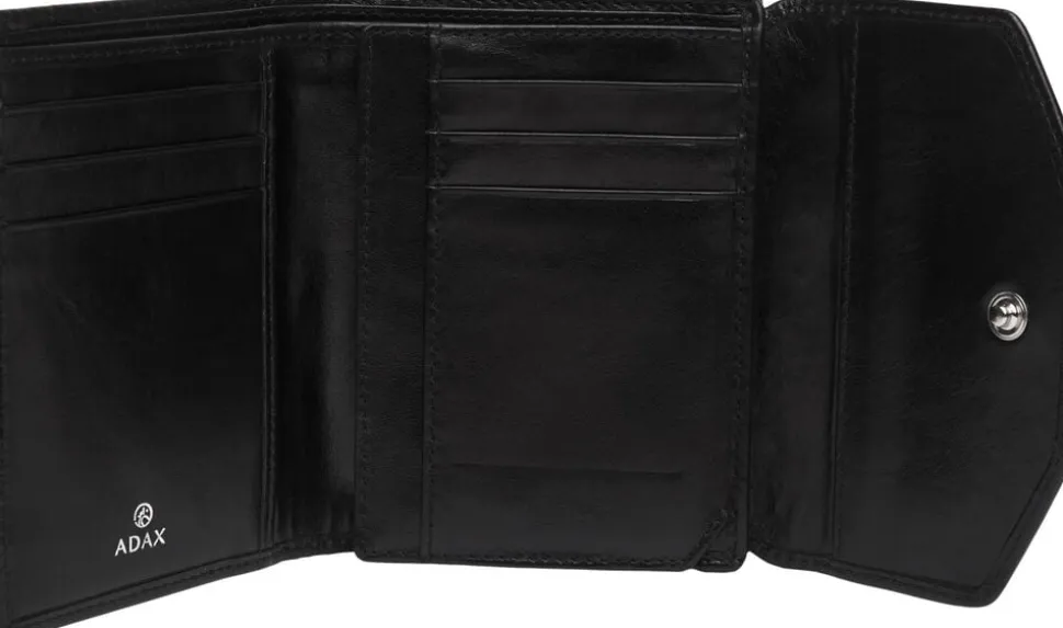 Sif damepung i Salerno skind fra Adax. Sif er en stor rummelig damepung med plads til det hele. Her får du pungen hvor du både har plads til mønter, kort sedler og kvitteringer og fotos af familien. Fronten af pungen åbnes med en trykknap, denne del af pungen rummer sedler, kvitteringer og stor klar plastlomme med plads til fotos mv. der er kortlommer til 7 kreditkort. På bagsiden af pungen er der et stort lynlåsrum til mønter mv. Pungen er RFID beskyttet.