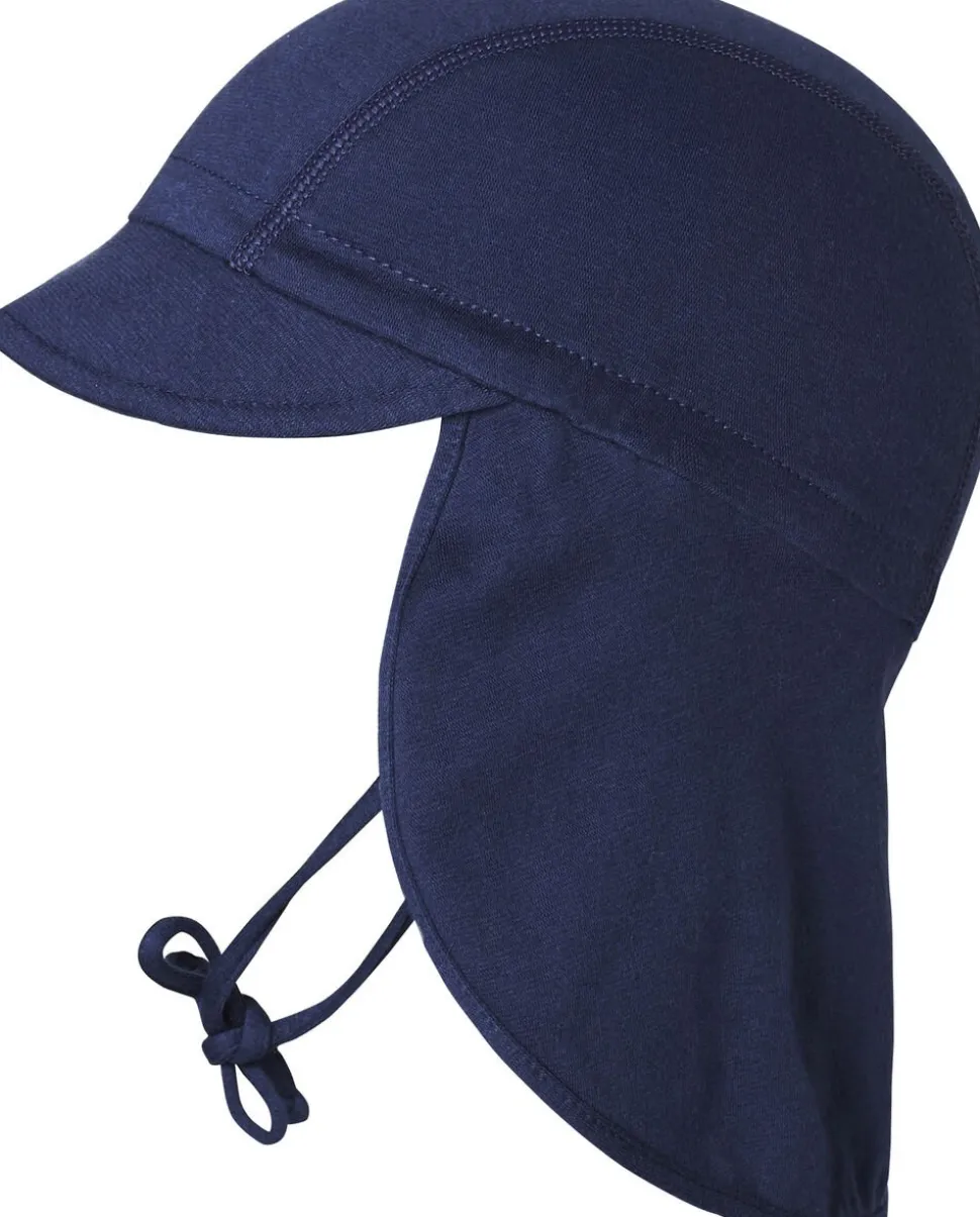 Nice legionnaire hat with neck shadow. The Legionnaire hat has a round head shape and a sewn-in elastic at the neck, which ensures a good fit. At the front there is a shadow, and at the back there is a long neck shadow, which shades the most exposed areas of the head and neck. The hat has practical ties, which are tied under the chin, so there is no risk of it falling off. The sun hat’s fabric has a UV protection filter of 50+, so that the child’s delicate skin is not exposed to the sun’s harmful UV rays.