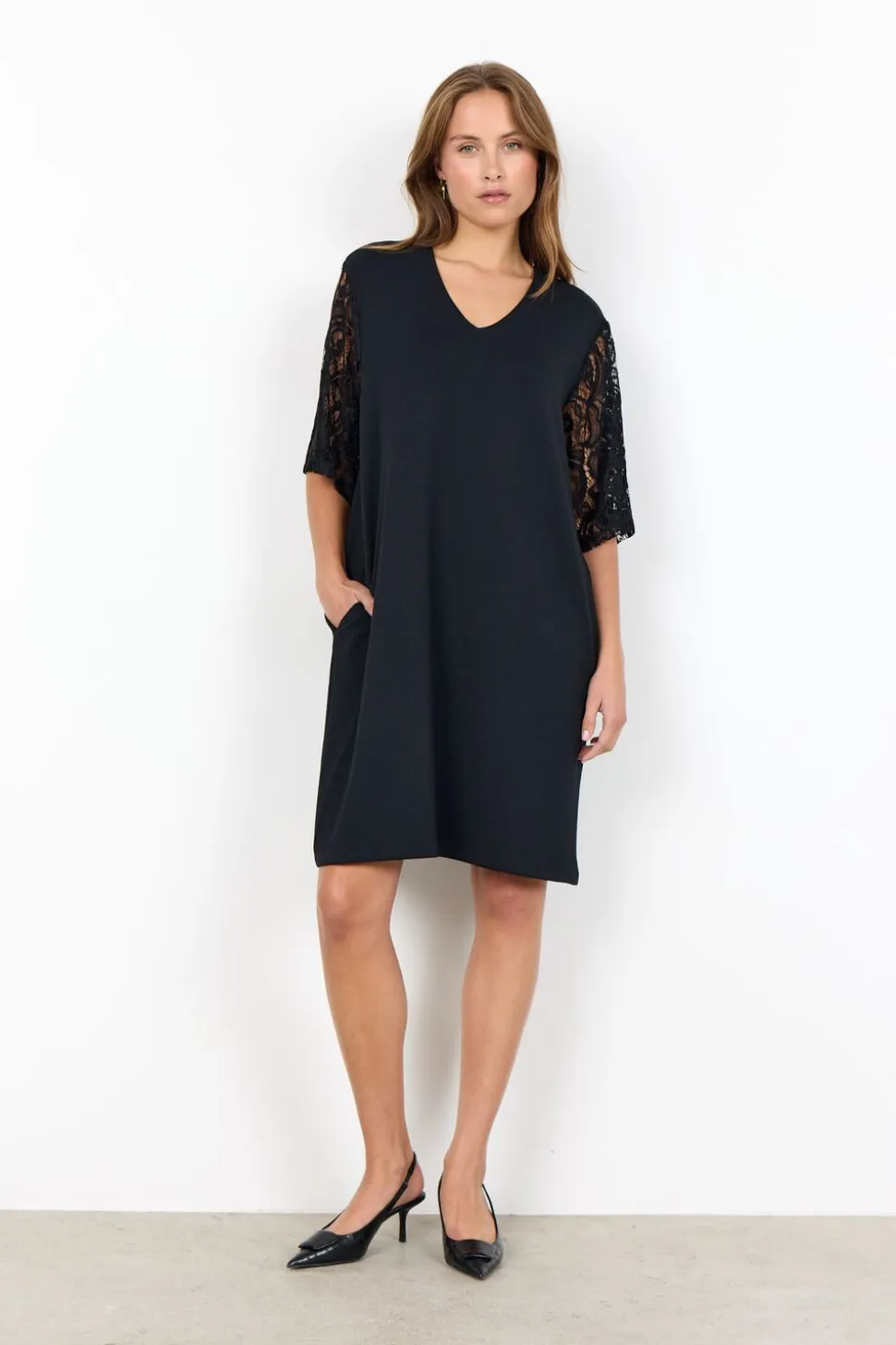 SC-BANU 272 er en kjole fremstillet af 48 % modal, 48 % polyester og 4 % elastan. Kjolen har V-udskæring og elegante blondeærmer, der giver et strejf af raffinement. Sæt den sammen med statement-smykker og høje hæle for et cool, unikt look.