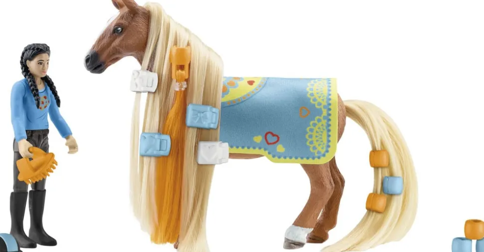 Oplev Kim & Caramelo-startsættet fra Schleich HORSE CLUB Sofias Beauties Når Kim er i nærheden, kan hendes Criollo Definitivo-hoppe Caramelo ikke være langt væk De to bedste venner er sammen 24 7 Det vil sige hele tiden! De kan få flere timer til at gå med at snakke om den sidste staldfest eller om farven blå Blå sweater. blåt tæppe, blå hårspænder Som du kan se, er det deres yndlingsfarve Men der er så mange nuancer at vælge imellem! Du kan heldigvis nemt udskifte manken og halen. så de ikke behøver at bestemme sig Og så kan du børste i ro og mag Ret smart, ikke?