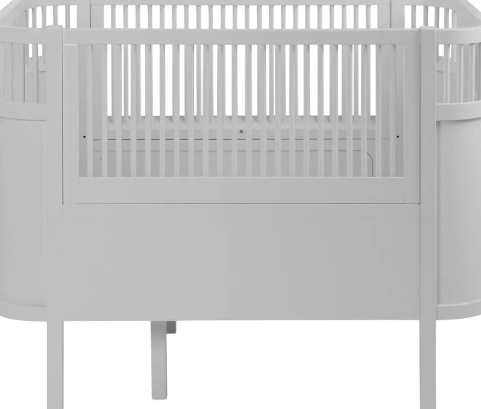 Børnesengen er fremstillet af certificeret træ og har bl.a. miljømærket EU-Blomsten. Når dit barn er nyfødt, kan sengebunden monteres i øverste position og derved give dig en god arbejdsstilling, når du skal lægge dit barn i seng eller tage barnet op.