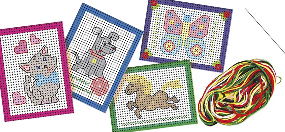 Kortene er fortrykte og perforerede for at gøre det lettere at brodere.