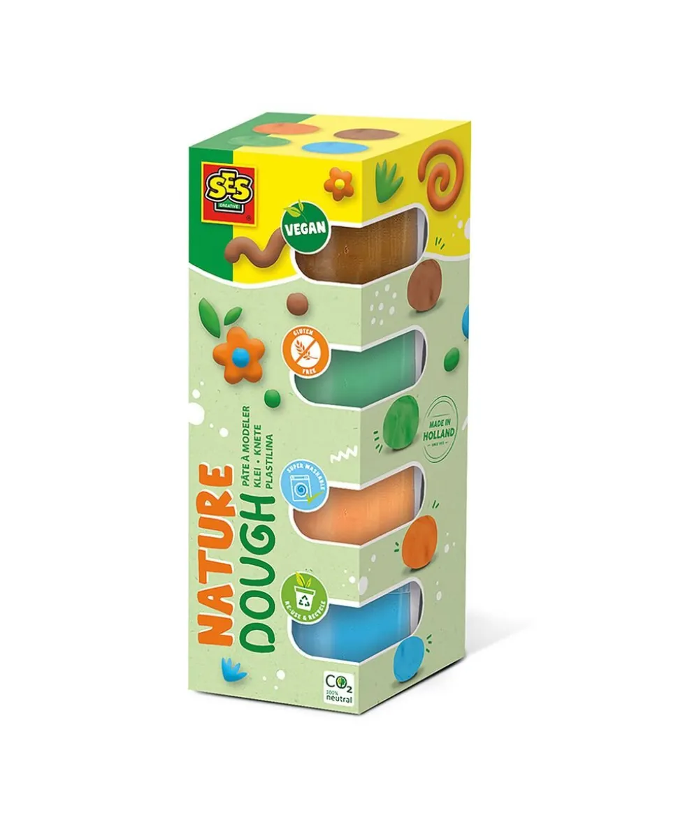 Silkeblød Nature modellervoks i naturfarver grøn, lyseblå, orange og brun.