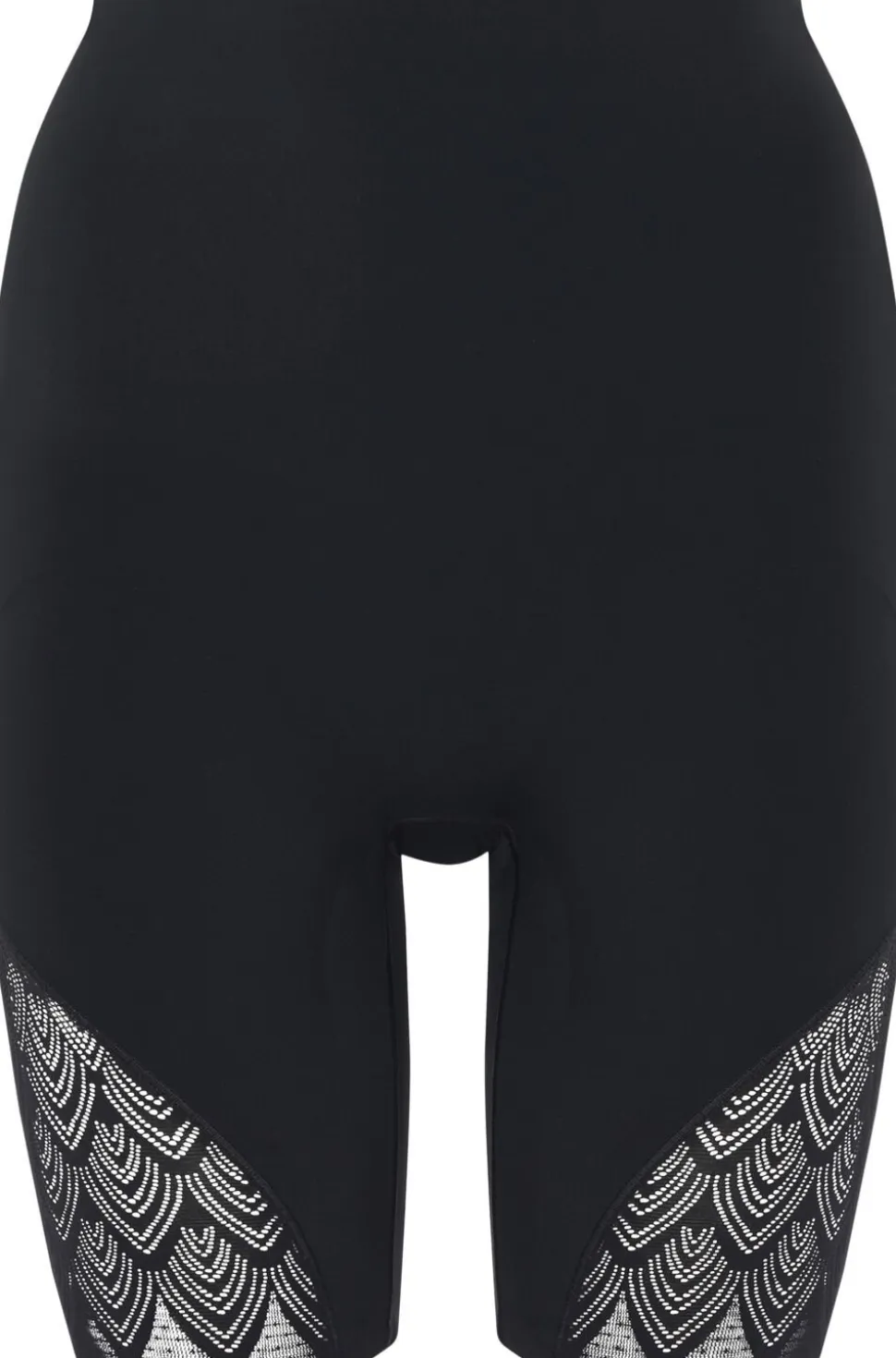 Moderne og feminin høj taljet trusse med let opstrammende effekt på maven og hofterne pga. det faste materiale.