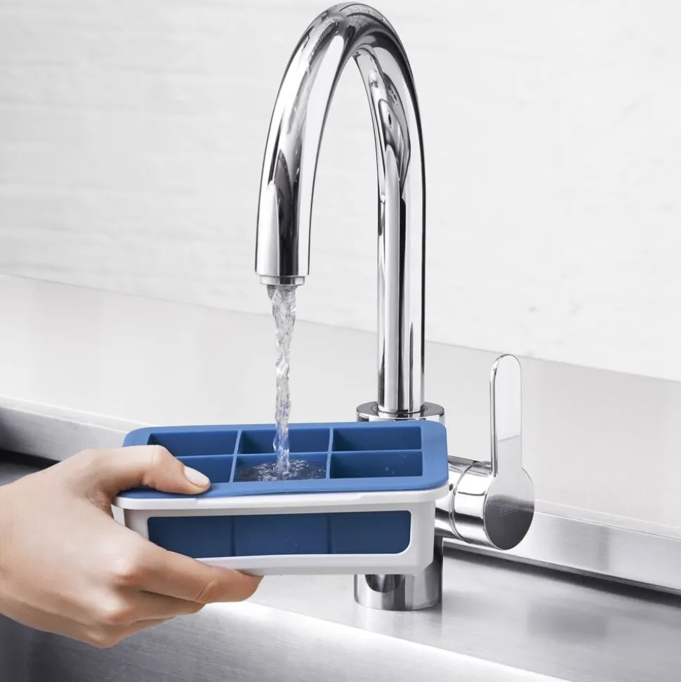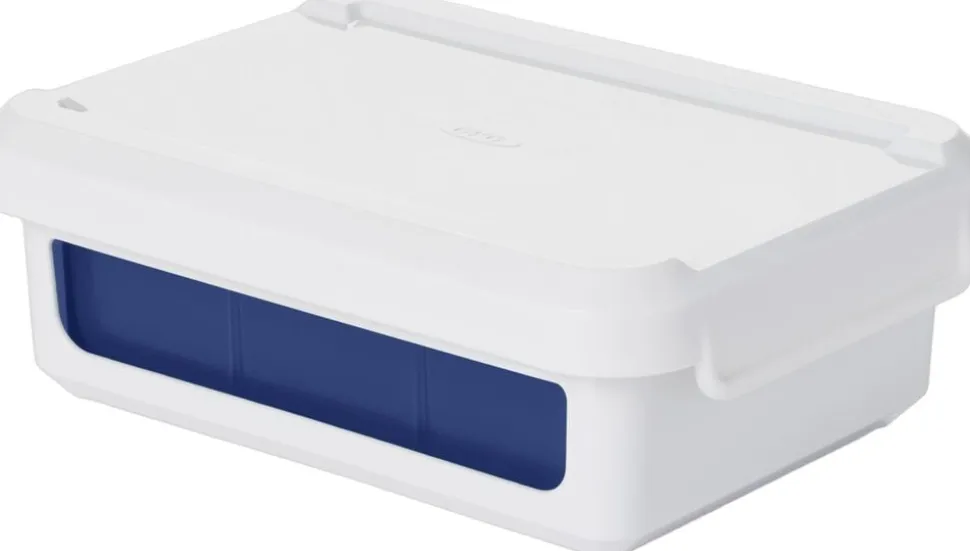OXOs Isterningebakke m/Låg gør det nemt at lave ensformige isterninger til dine drinks. Bakken laver 6 store isterninger på 4,5 x 4,5 cm og den fleksible silikone gør det nemt at få de frosne isterninger ud af bakken når de skal bruges. Bakken sidder i en fast plastik ramme, som giver bakken støtte og stabilitet mens bakken fyldes, flyttes og opbevares. Låget holder lugt ude og gør det samtidig muligt at stable flere bakker ovenpå hinanden. Tåler opvaskemaskine.