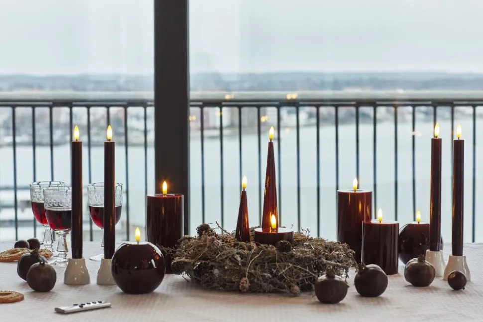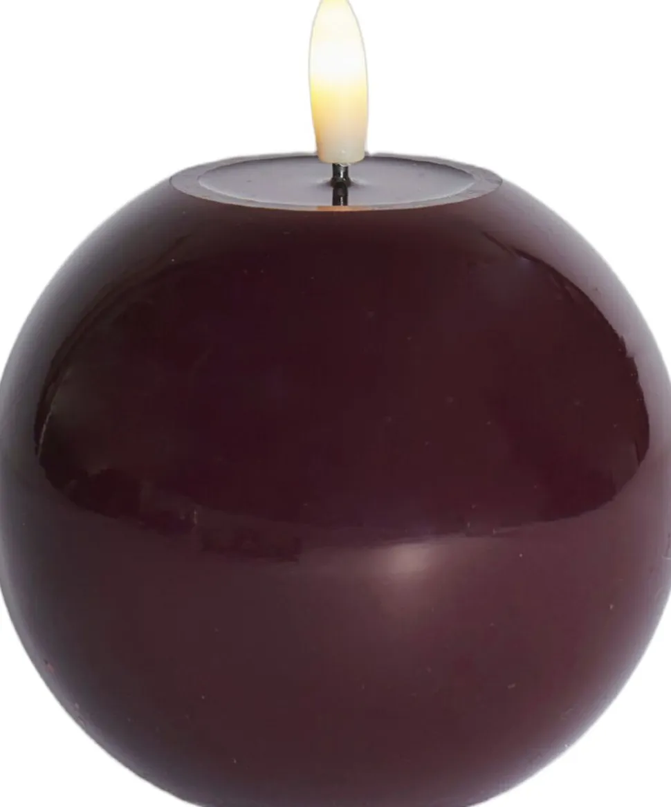 LED lak kuglelys med 3D flamme der lyser med et varmt hvidt lys