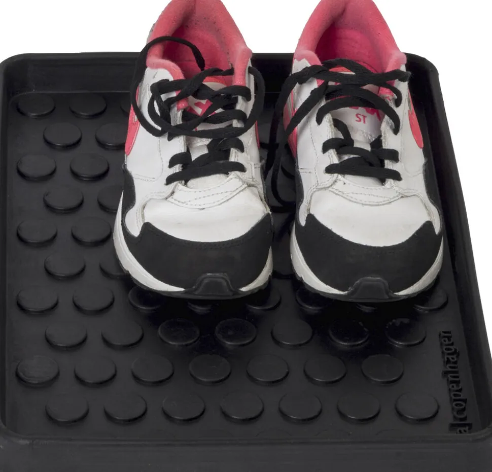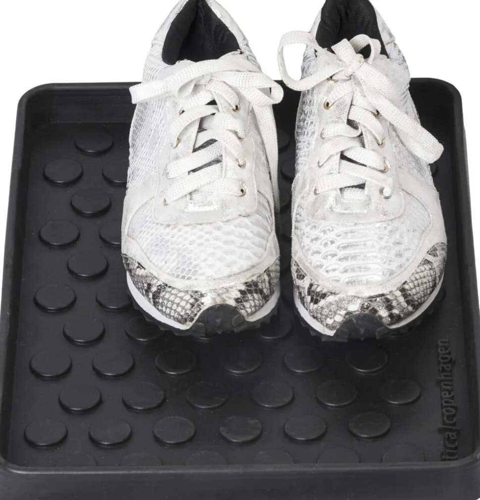 Tica Copenhagen skobakker i er støbt af i gummi, hvoraf 60% er recycled gummi. Skobakkerne er stabile, holdbare og i flot design. De er robuste, holdbare og lette at rengøre med en bruser eller støvsuger.