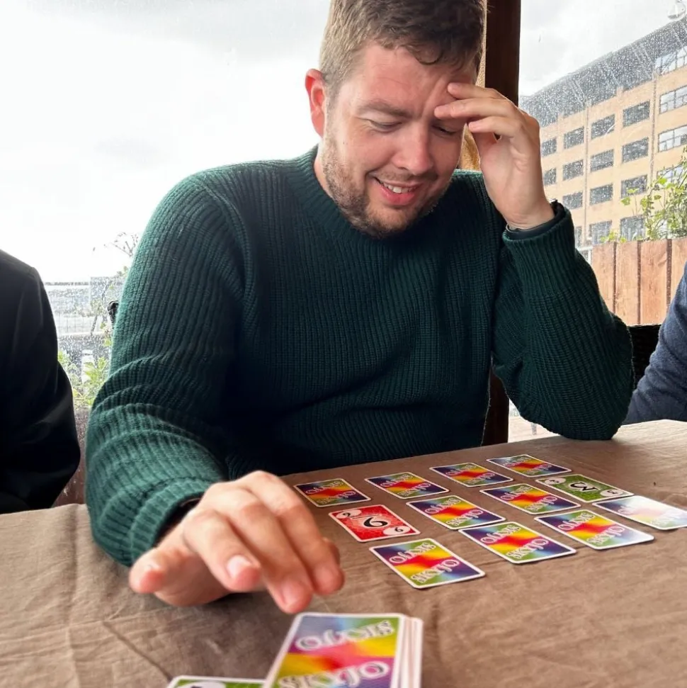 Sjovt familekortspil fra 6år Hver spiller har 12 skjulte kort (3×4). To vendes med billedsiden opad. På din tur kan du tage det øverste kort fra enten kassestakken eller trækkebunken Du kan bytte ét af dine kort (skjult eller åbent) i din opstilling. Runden slutter, når en spiller kun har åbne kort (alle får lige mange ture). Alle kort afsløres, og pointene beregnes ved at lægge kortenes værdier sammen. Spillet slutter, når en spiller når 100 eller flere point. Spilleren med færrest point vinder.