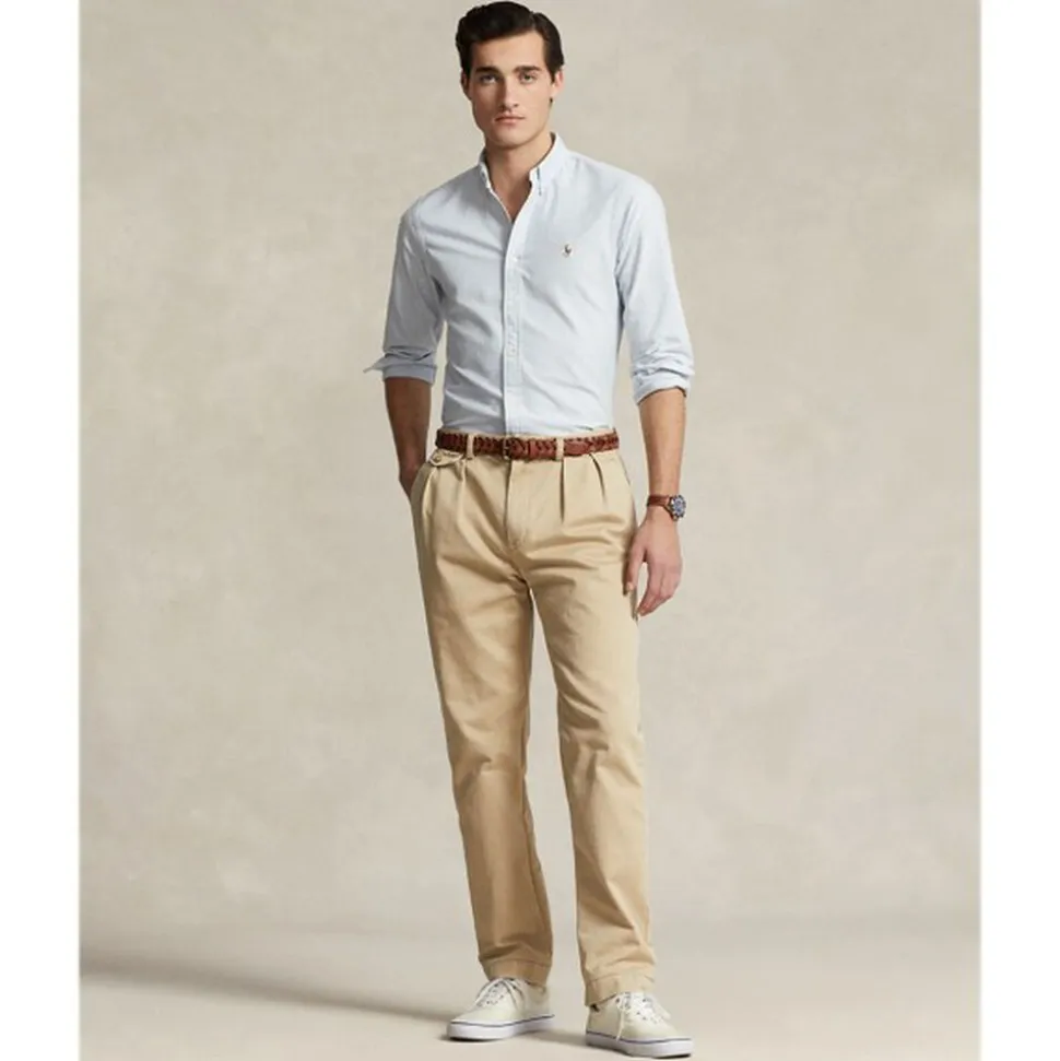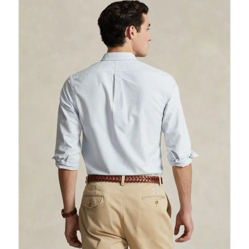 Oxford-skjorten debuterede tidligt i Ralph Laurens designs, og siden da har den cementeret sin status som en grundpille i Polo-stilen. Vores stof er udviklet med en hemmelig vask, der giver det øjeblikkelig karakter, lethed og en meleret blødhed. Formlen er så unik, at den har været opbevaret i en bankboks i mere end tre årtier. Udover detaljer, der vækker minder om prep-school inspirationen, giver den en afslappet følelse, som skaber det, vi kalder den perfekte “rynkeffekt.” I dag fortsætter Mr. Lauren med at skabe utallige variationer af sin ikoniske skjorte, inklusive denne slanke version, som er afsluttet med vores karakteristiske Pony.