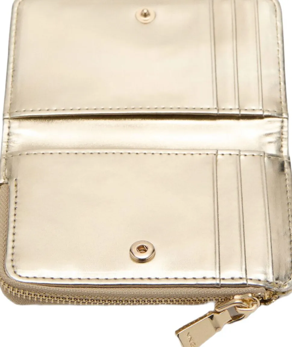 Lille størrelse, quiltet Design, metallisk Design, seks kortpladser på den ene side, lynlåslomme, flaplukning med trykknap.