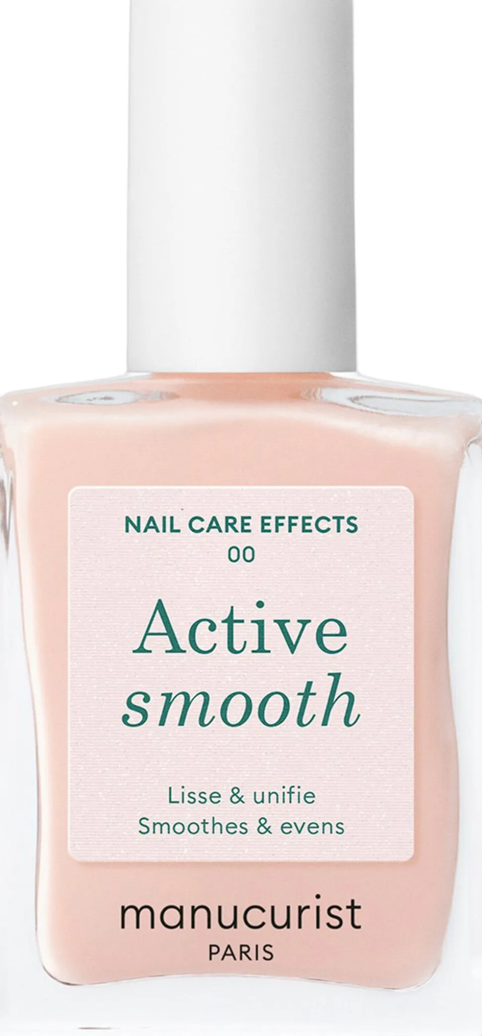 Active Smooth er en krydsning mellem neglepleje og make-up og er en negleperfektor. Det beskytter, nærer og hjælper med at reducere ufuldkommenheder i selv de mest beskadigede eller teksturerede negle. Med en formel beriget med ricinusfiber og hexanal udglattes kamme, ufuldkommenheder slettes og negle forstærkes.