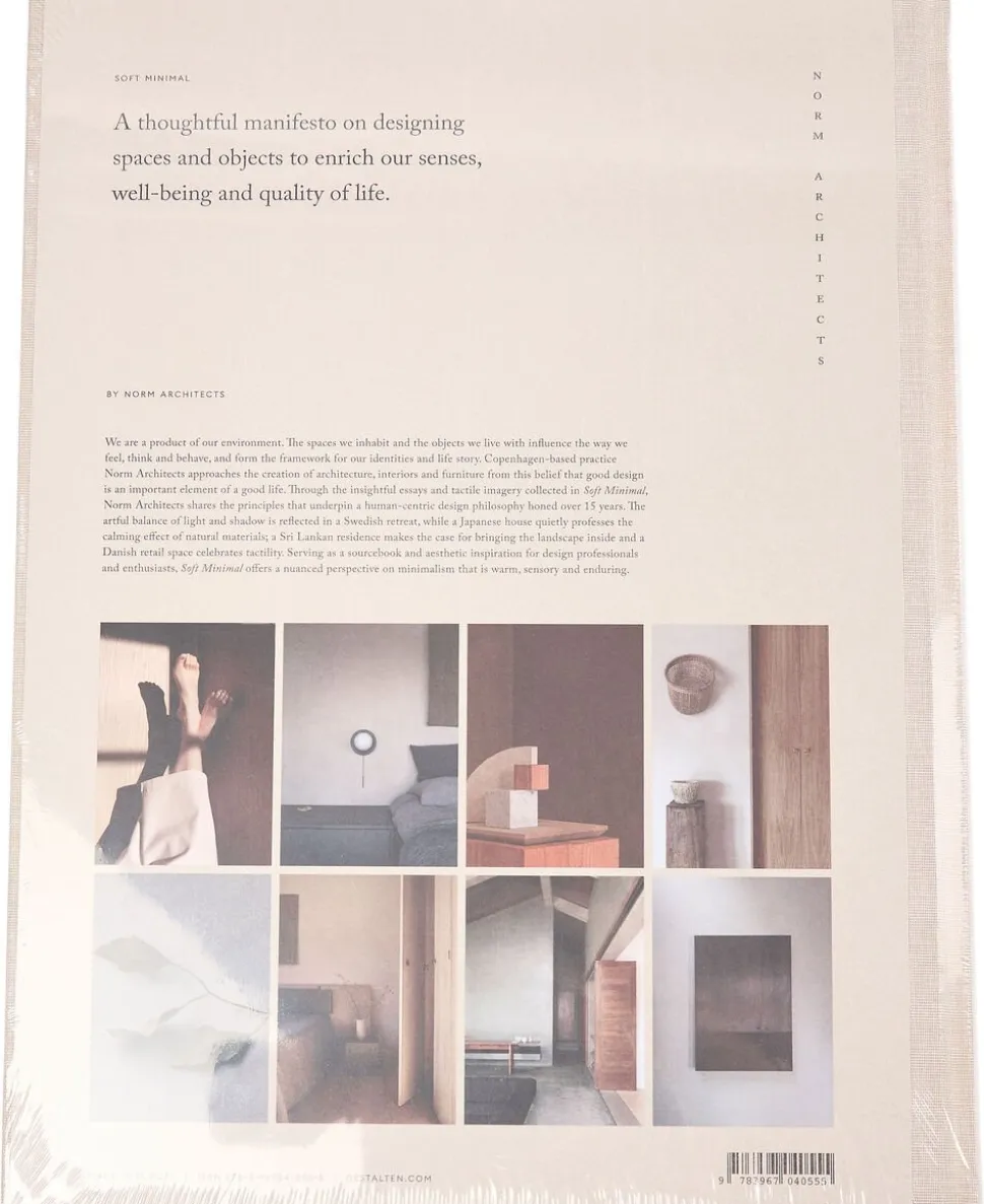 Gennem de indsigtsfulde essays og taktile billeder, der er samlet i Soft Minimal, deler Norm Architects de principper, der understøtter en Designfilosofi, der er centreret om mennesket, og som er blevet finpudset gennem 15 år. Den kunstneriske balance mellem lys og skygge afspejles i et svensk tilbagetog, mens et japansk hus roligt viser den beroligende effekt af naturlige materialer.