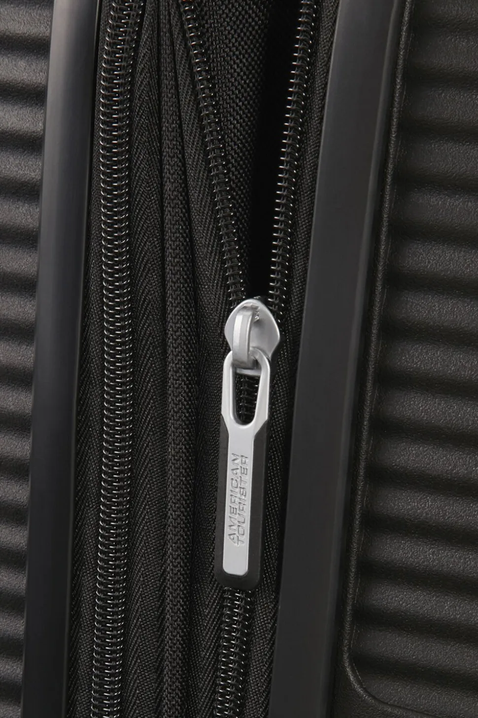 Kuffert lavet af slidstærk polypropylen, mulighed for udvidelse, indvendig stofforing med krydsbånd og lynlås lomme, Dobbelte hjul, TSA lås, rumindhold 71,5/81 L, vægt 3,7 kg. 3 års garanti.
