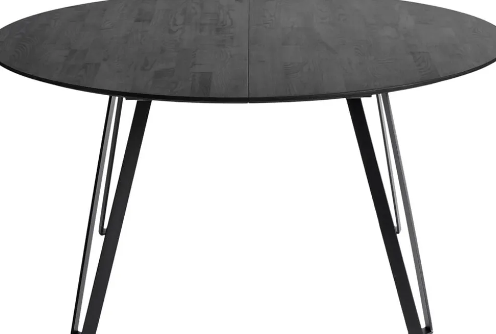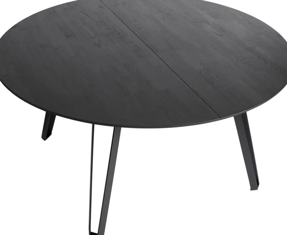 Spisebord Space Black er et rundt spisebord i massivt, sortbejdset ask. Det moderne og industrielle design af bordbenene i bøjet jern, giver en unik kontrast til det ellers runde bord.