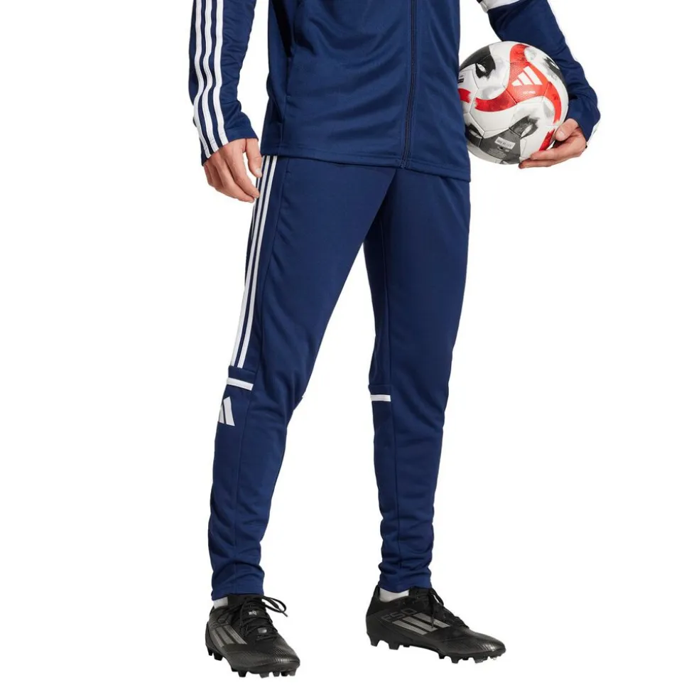 Adidas Squadra 25 Bukser kombinerer funktionalitet og komfort til seriøse sportsudøvere og trænere. Bukserne er fremstillet i 100 % genanvendt polyester med AEROREADY-teknologi, som effektivt håndterer fugt og holder dig tør under intens træning. Den elastiske talje med snøre sikrer en personlig pasform, mens lynlåse ved anklerne gør det nemt at tage bukserne af og på over sko eller støvler. Med praktiske lynlåslommer får du desuden sikker opbevaring til småting. Squadra 25 er det oplagte valg til både banetræning og hverdagsbrug.