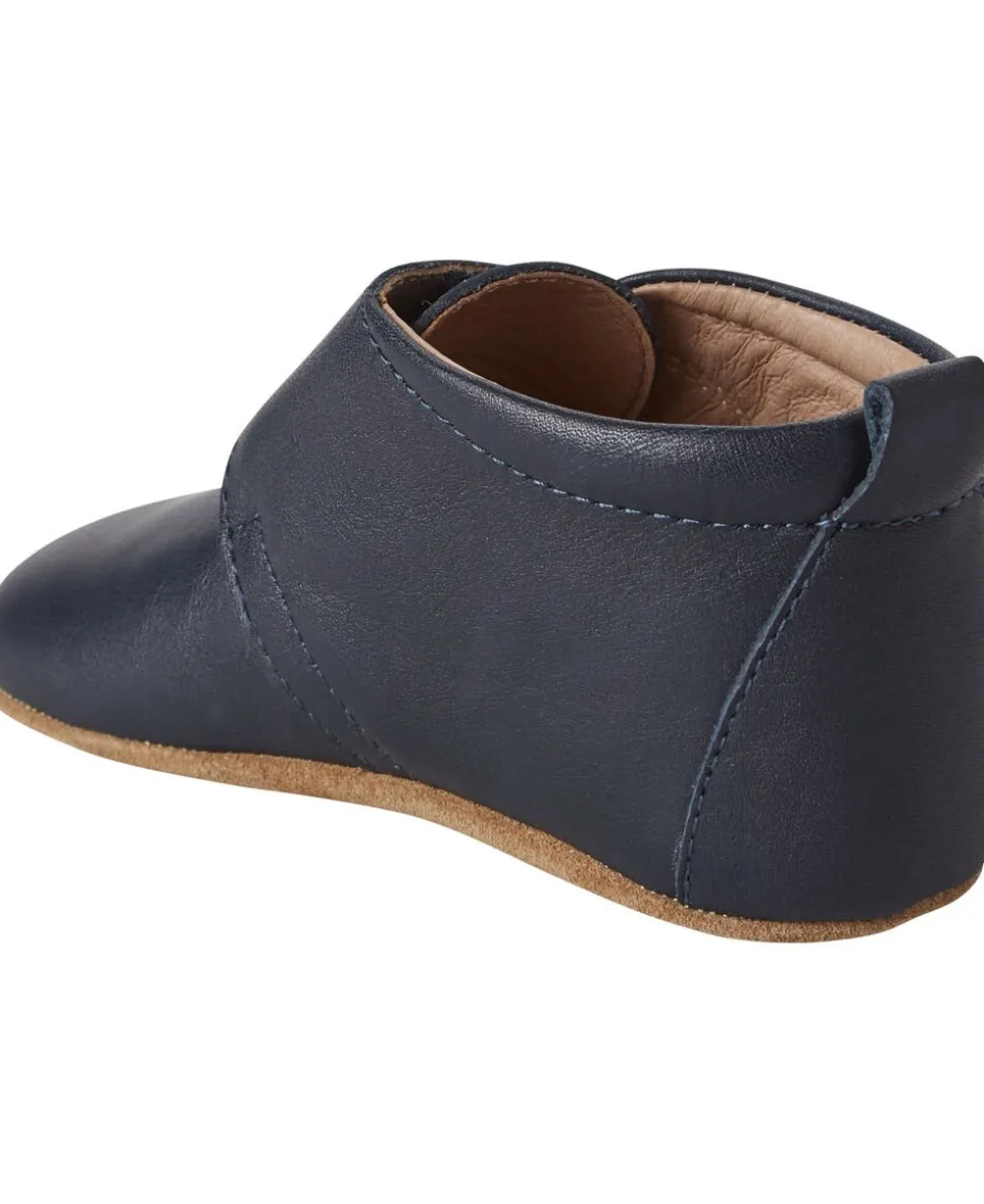 Hjemmesko, velcrolukning. Produceret i 100% naturligt læder, skindfoer og en blød sål af ruskind og skridsikker gummi. Fast hælkappe giver optimal støtte til foden.