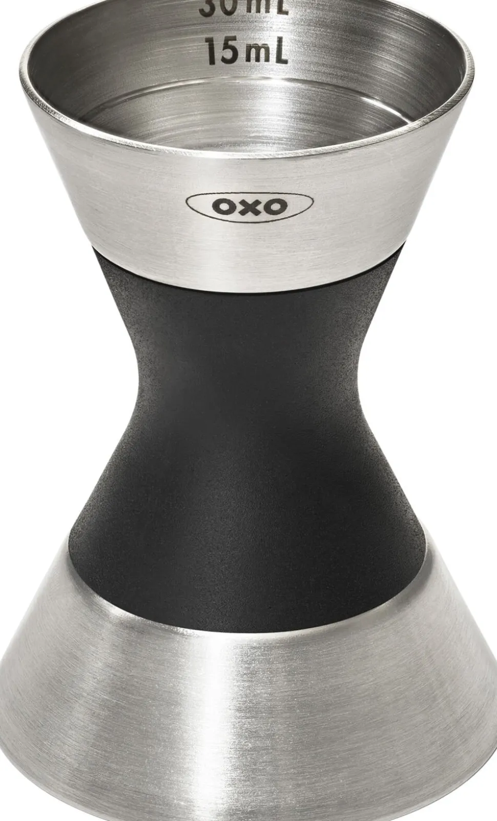 OXOs Steel Dobbelt Målebæger er uundværlig i enhver hjemmebar. Den er ikke bare praktisk, den har også et elegant look i børstet rustfrit stål med blødt non-slip greb midt på. Den ene side måler 5, 15 og 30 ml. Den anden side måler 10, 20 og 50 ml.