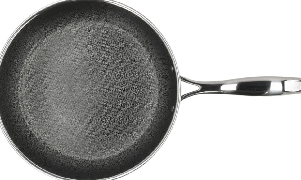 Stegepande, 28 cm. Paillon Hybrid-serien fra Pillivuyt Gourmet er fremstillet i 3-ply rustfrit stål, som er en konstruktion af to lag rustfrit stål med et aluminiumlag imellem. Det betyder, at varmen fordeles hurtigt og fastholdes jævnt. Takket være den indvendige keramiske hybridbelægning får du en slidstærk overflade med en effektiv non-stick-effekt. Det forhøjede mønster i rustfrit stål beskytter bunden, mens den keramiske topbelægning sikrer, at maden ikke brænder fast. Kort fortalt: Fremstillet i 3-ply rustfrit stål Keramisk hybridbelægning på indersiden Poleret rustfrit stål på ydersiden Velegnet til alle varmekilder også induktion Tåler alle redskaber, men vi anbefaler træ, plast eller silikone Tåler ovn op til 240 °C (gryder dog uden låg) Håndopvask anbefales Produceret uden PFAS
