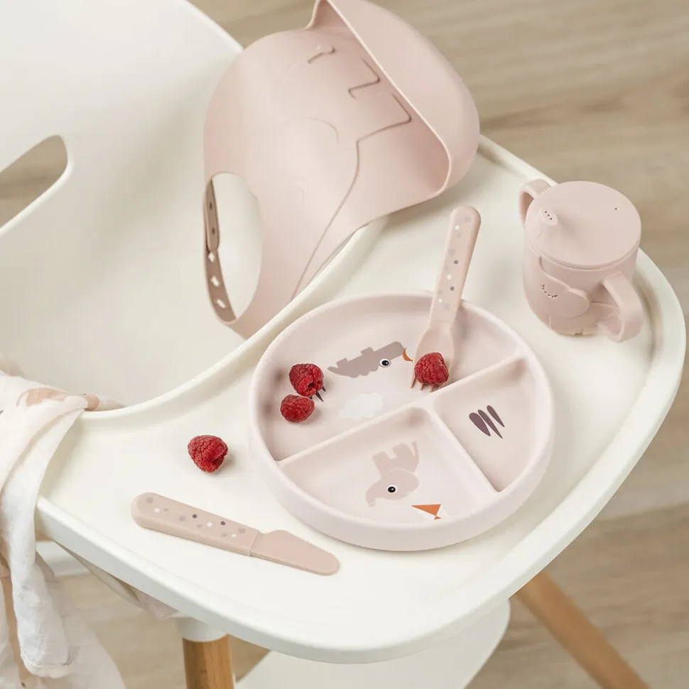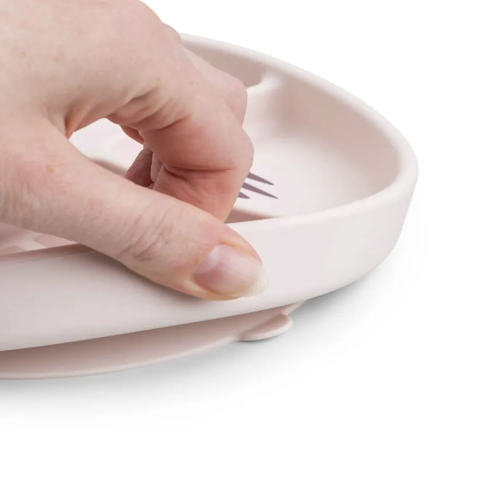 En praktisk base med sugekop forhindrer dit barn i at skubbe, vippe eller kaste den opdelte tallerken