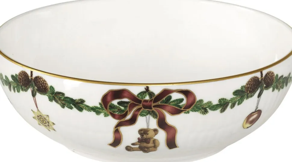 Skålen er oplagt til servering af nødder, frugt eller som morgenmadsskål. Skålen er dekoreret med et udvalg af juledekorationer som inkluderer en bamse og småkager