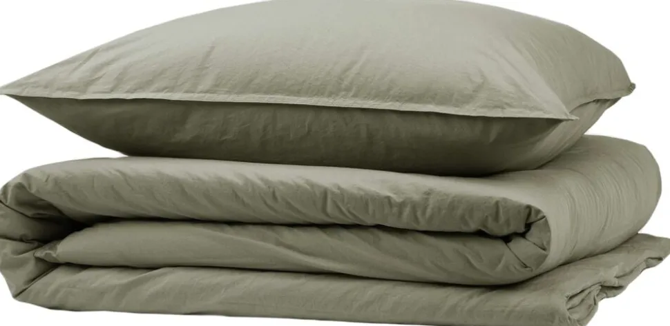 Stonewashed sengesæt fra Magasin du Nord Collection har et moderne design med kraftige dobbeltstikninger i kanterne og et vasket, let rustikt udtryk. Der følger to hovedpudebetræk med.