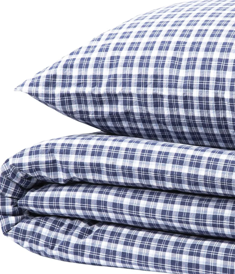 Stonewashed sengesæt fra Magasin du Nord Collection har et moderne design med kraftige dobbeltstikninger i kanterne og et vasket, let rustikt udtryk. Der følger to hovedpudebetræk med.
