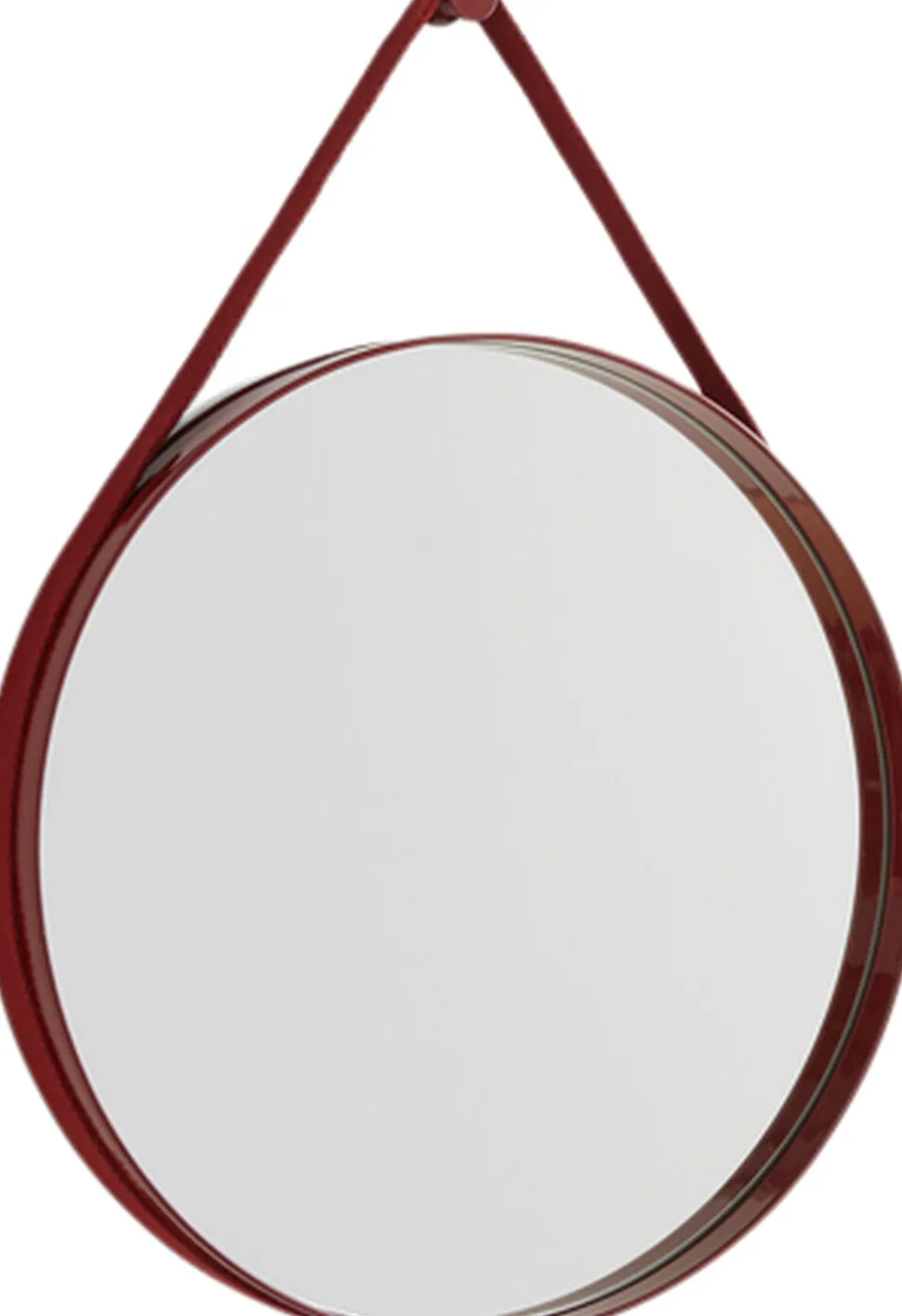 Med et funktionelt og minimalistisk Design har stropspejlet en diskret rille rundt om kanten, der indeholder en vævet strop til montering af spejlet på væggen. Strap Mirrors rene cirkulære Design er fremstillet i Pudder stål med en højglansfinish i forskellige farver, hvilket gør den ideel til ophængning i badeværelser, soveværelser og entréer.