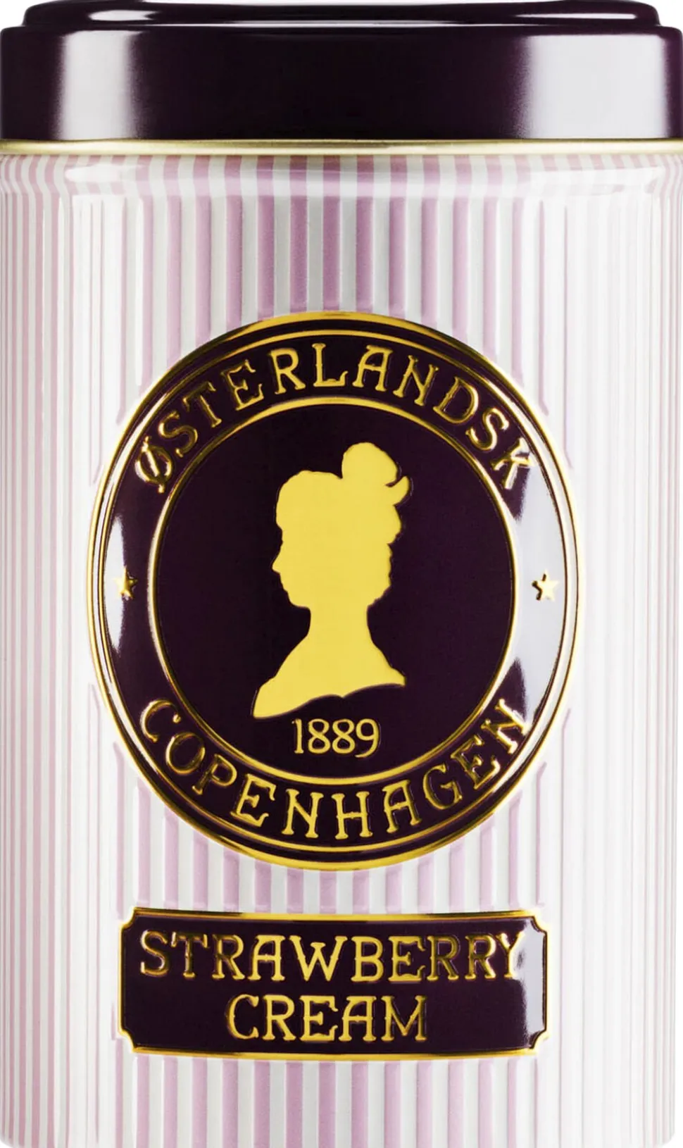 Strawberry Cream Tea, 125g dåse. Ingredienser: Grøn Sencha the, Kokosflager, Creme aroma, Jordbær
