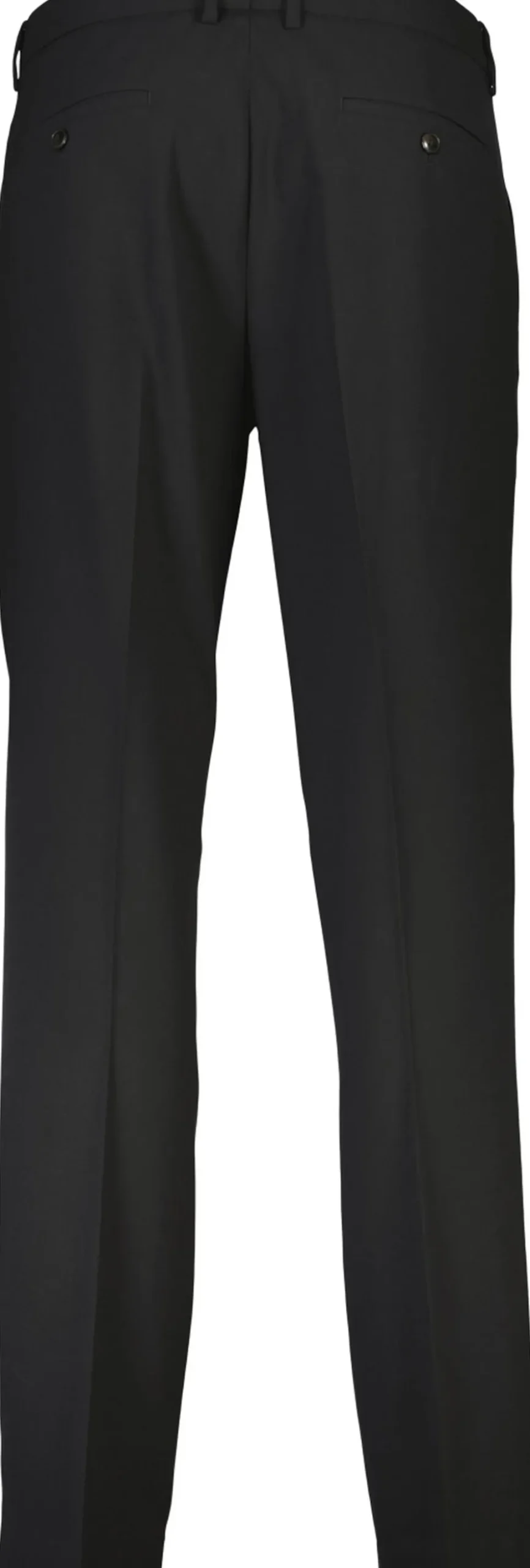 Klassiske habitbukser med pressefolder og paspolerede baglommer med knapper. Bukserne lukkes med knap og skjult lynlås.