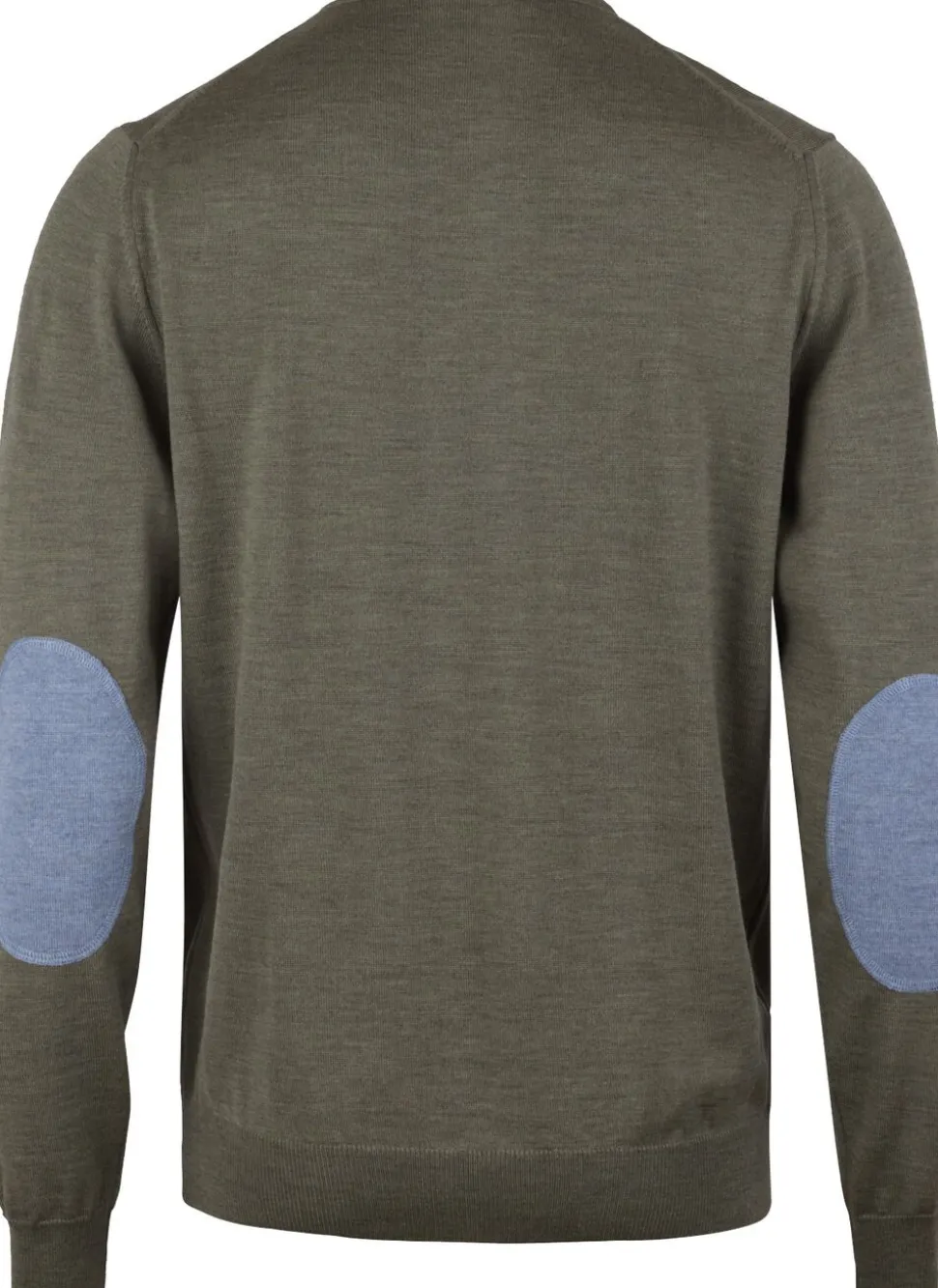 Denne sweater med rund hals er fremstillet i merinould og har albuelapper og ribstrikket hals, manchetter og kant forneden.