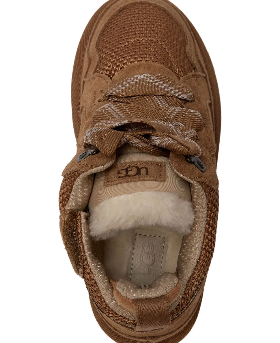 Forede sneakers fra UGG, der består af en kombination af flere forskellige kvaliteter, der tilsammen giver en rigtig flot effekt. Derudover har skoen snørebånd på fronten, en præget sål samt synings- og logodetaljer. Ekstra snørebånd medfølger.