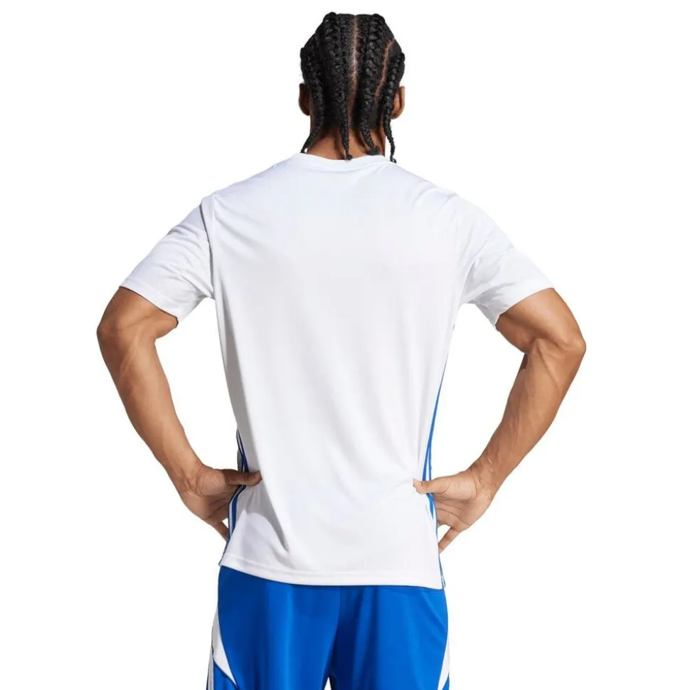 Adidas Tabela 23 Trænings T-shirt Klassisk design møder moderne performance. Oplev den perfekte træningstrøje til fodbold og træning. Tabela 23 kombinerer tidløs stil med funktionel komfort. Dine fordele: * Aeroready-teknologi svedtransporterende stof holder dig tør hele træningen * Mesh-indsatser på ærmerne optimal ventilation og bevægelsesfrihed * Slim fit pasform elegant silhuet uden at begrænse dine bevægelser * 100% genanvendt polyester holdbar kvalitet * Klassiske tre striber på siderne ikonisk Adidas-look Ideel til både kamp og træning. Få din Tabela 23 i dag og føl forskellen på træningsbanen.
