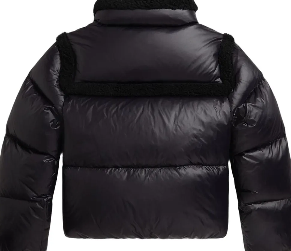 Denne jakke er et sødt valg til de kølige dage og forener en vandafvisende skal og 650-fyld-ned med en firkantet silhuet og teddy fleecekant